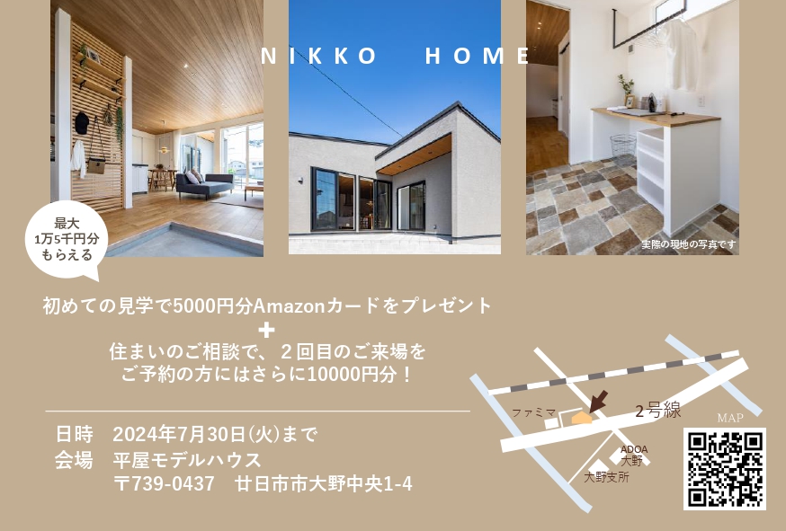- 【大野】7月平屋モデルハウス見学会【最大15000円分プレゼント】