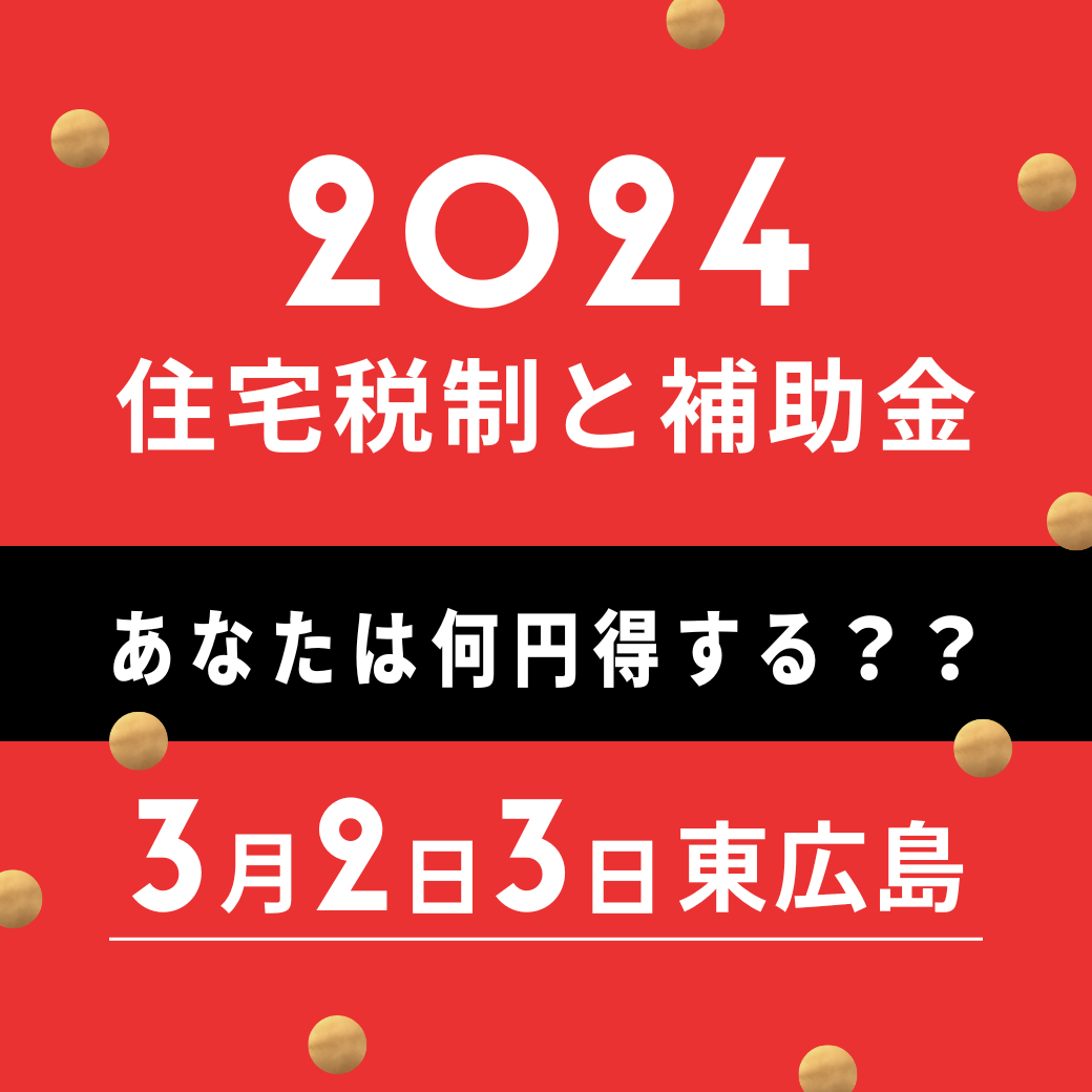 【東広島】2024年住宅税制と補助金ーあなたは何円得する?ー【3/2-3】
