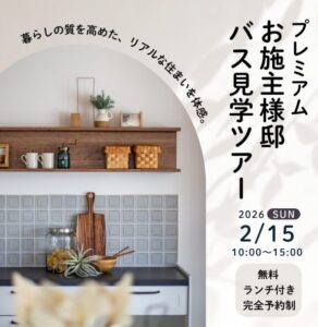 【2月15日開催】家づくりの“すべて”が分かる!オーナー様宅バス見学会