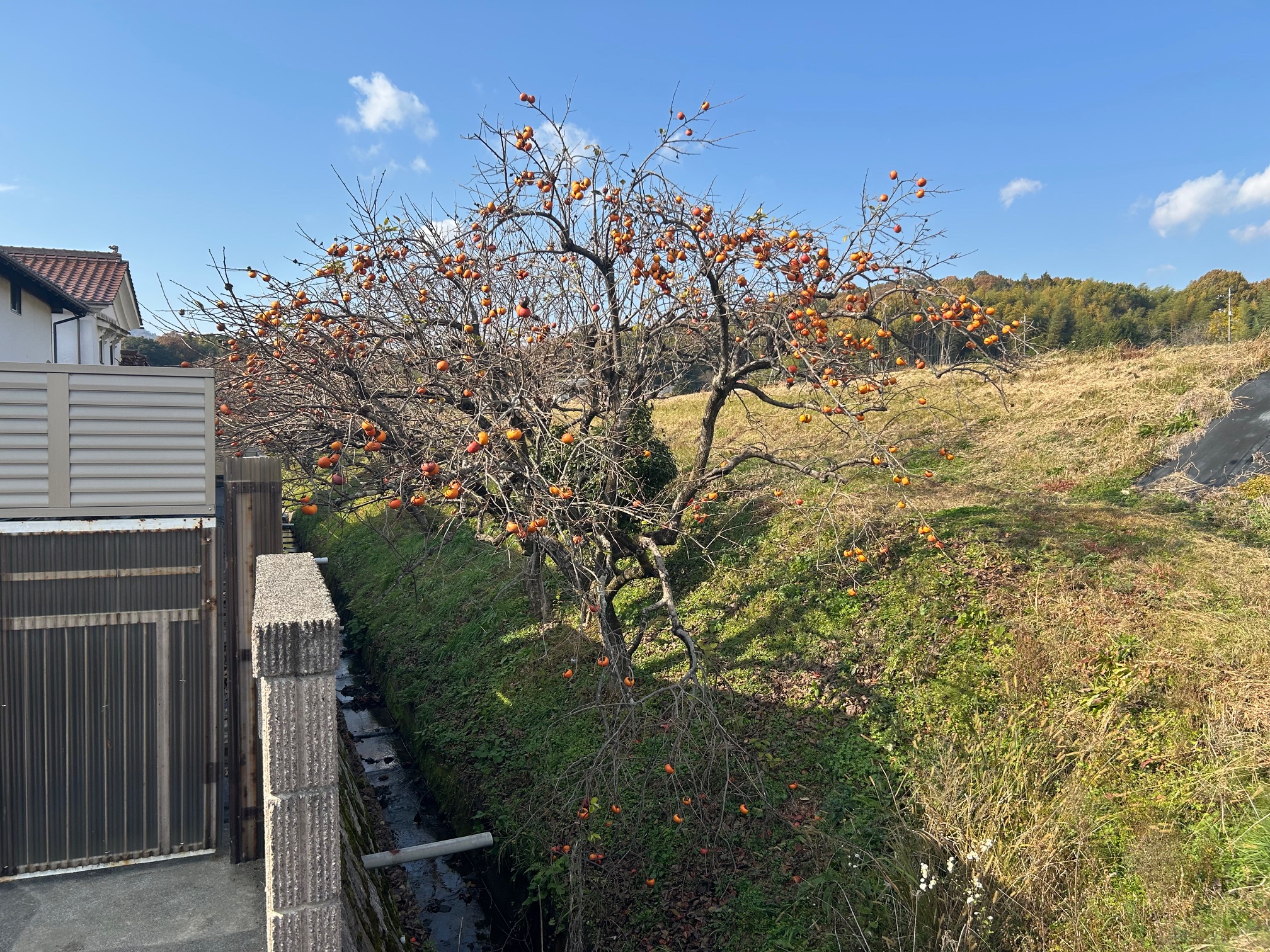 ・のどかな風景に癒されながら柿の木はチェック済み