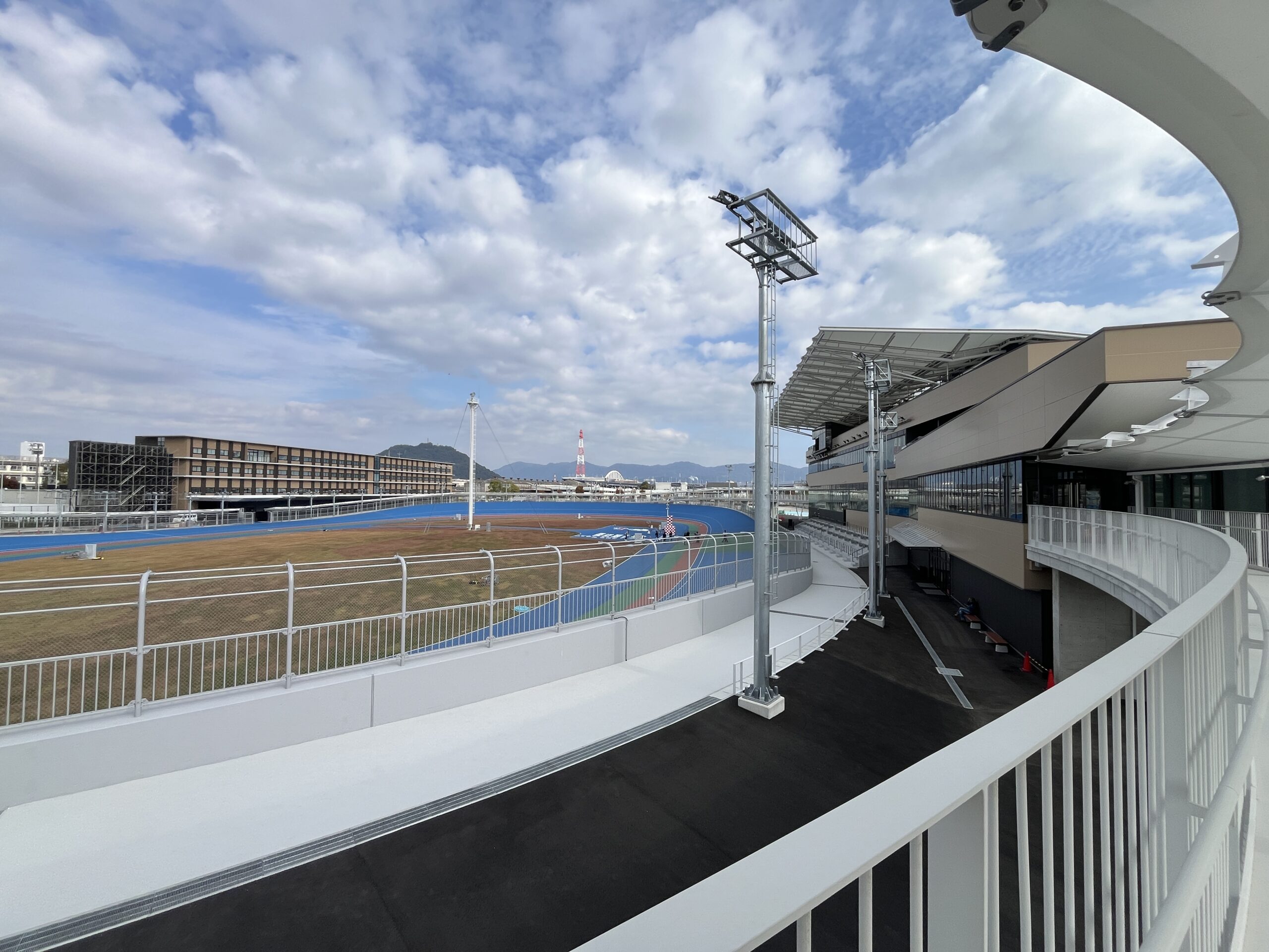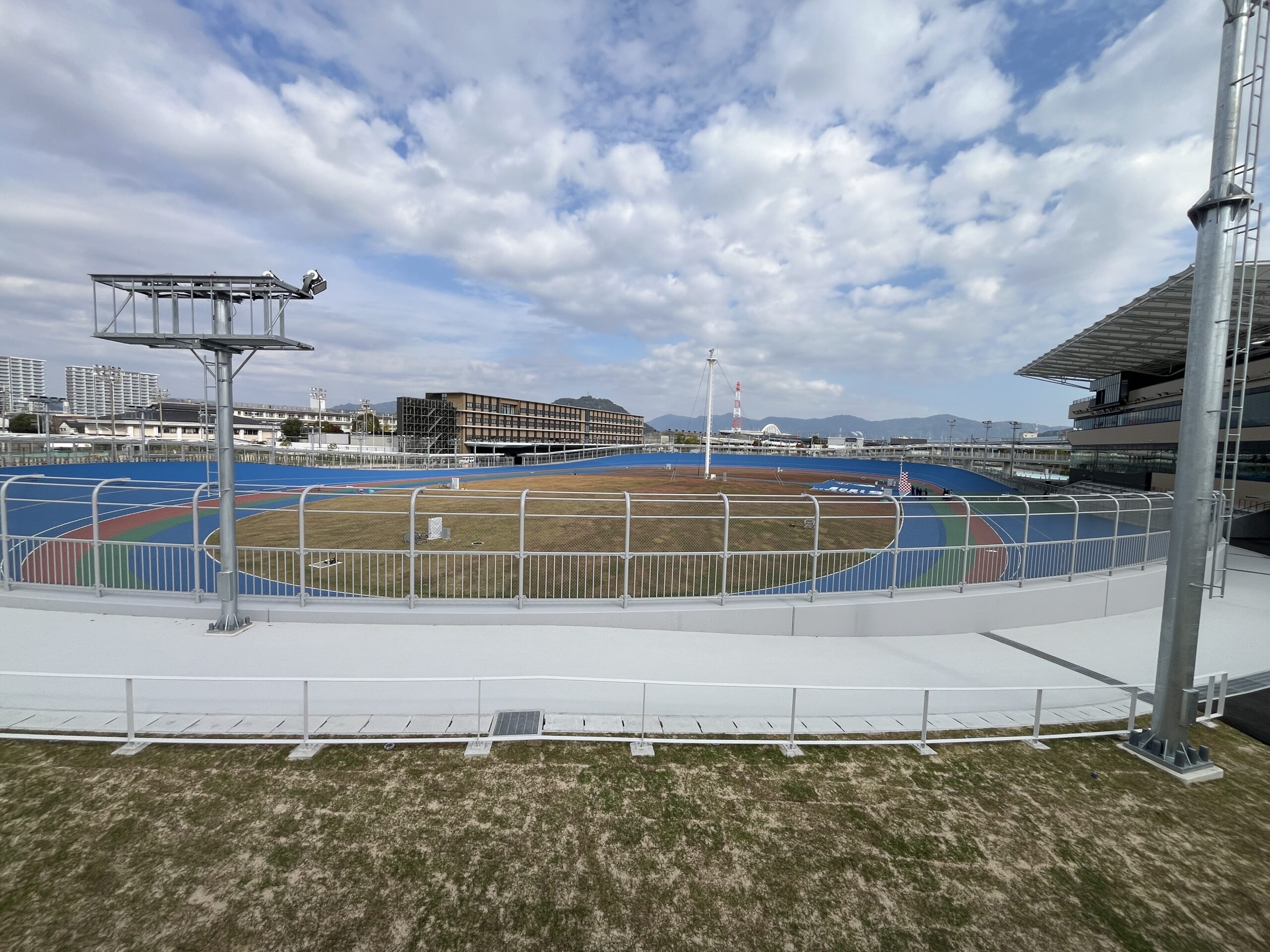 また、コース外周部にはサイクリングロードや芝生広場なども整備中で、競技以外にも市民が楽しめる空間づくりが進められています。