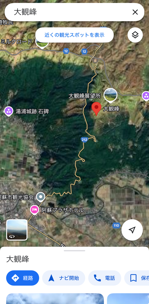 ただし大観峰までの道のりは、Googleマップのスクショでも分かる通り…