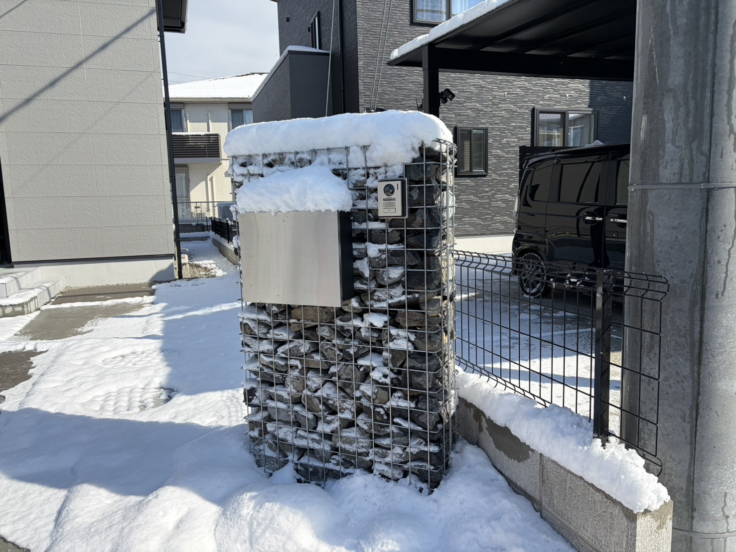 ガビオンの門柱と雪の相性が、想像以上に良い!!!