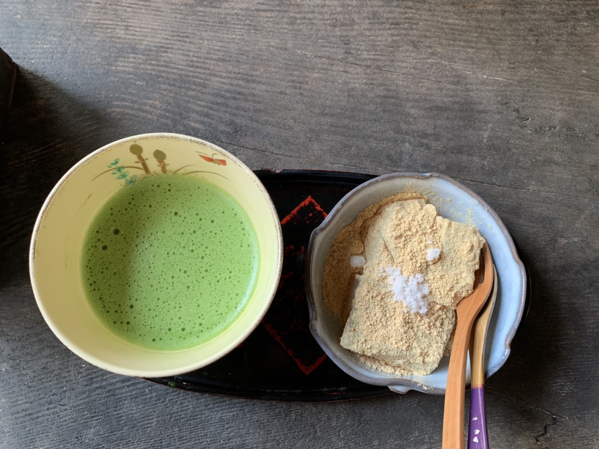けれども! 花より団子で、抹茶とわらび餅を頂きました♪ すごくおいしい!