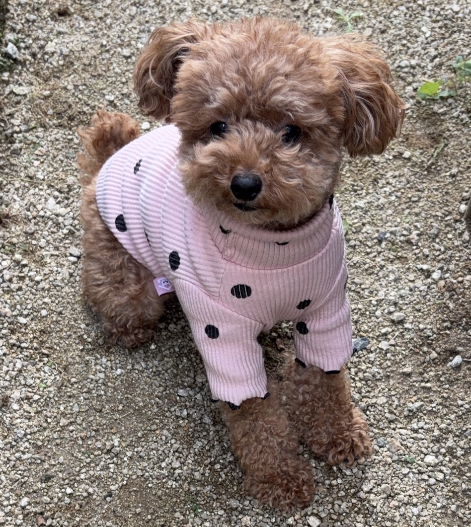 トリミング前のメイは、毛が伸びてふわふわ、ちょっとボリューミーな感じ。