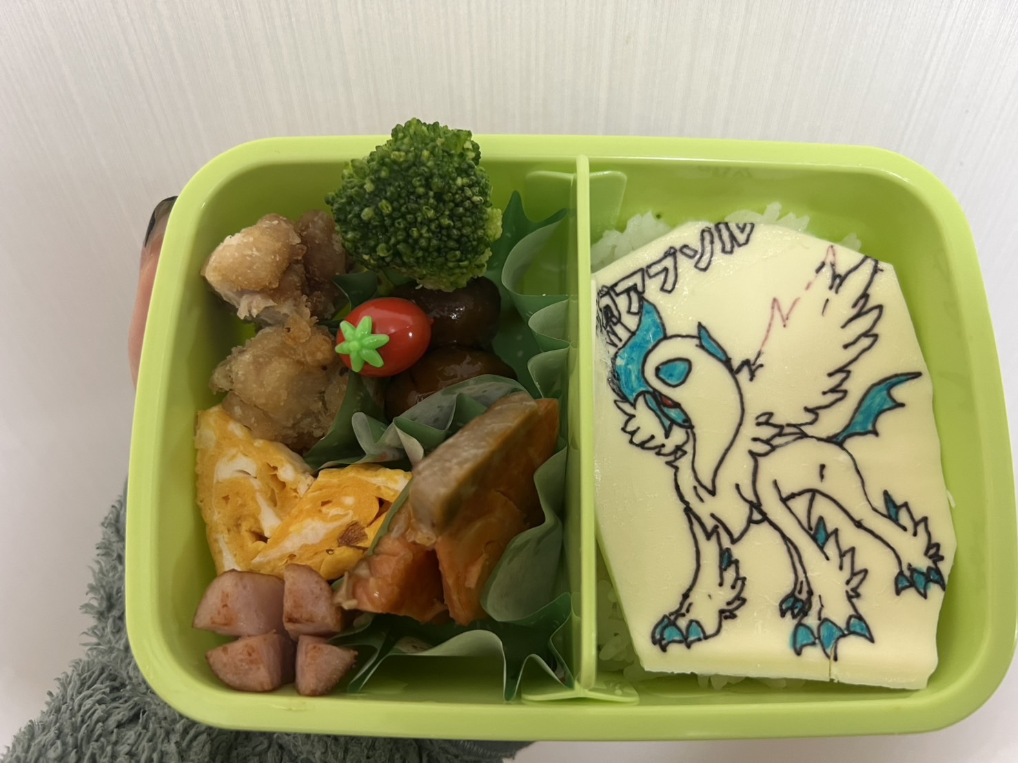 息子の好きなポケモンのアブソルを食用ペンを用いてチーズに描きました。