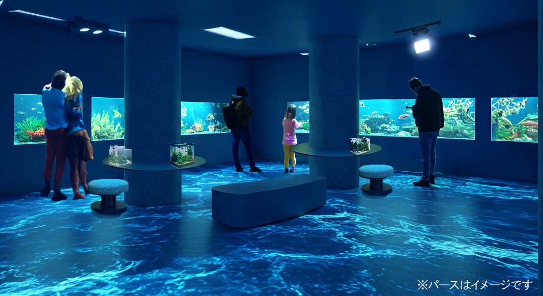 展示面積は約760㎡(旧館の約2倍)、水槽は約70基を予定。