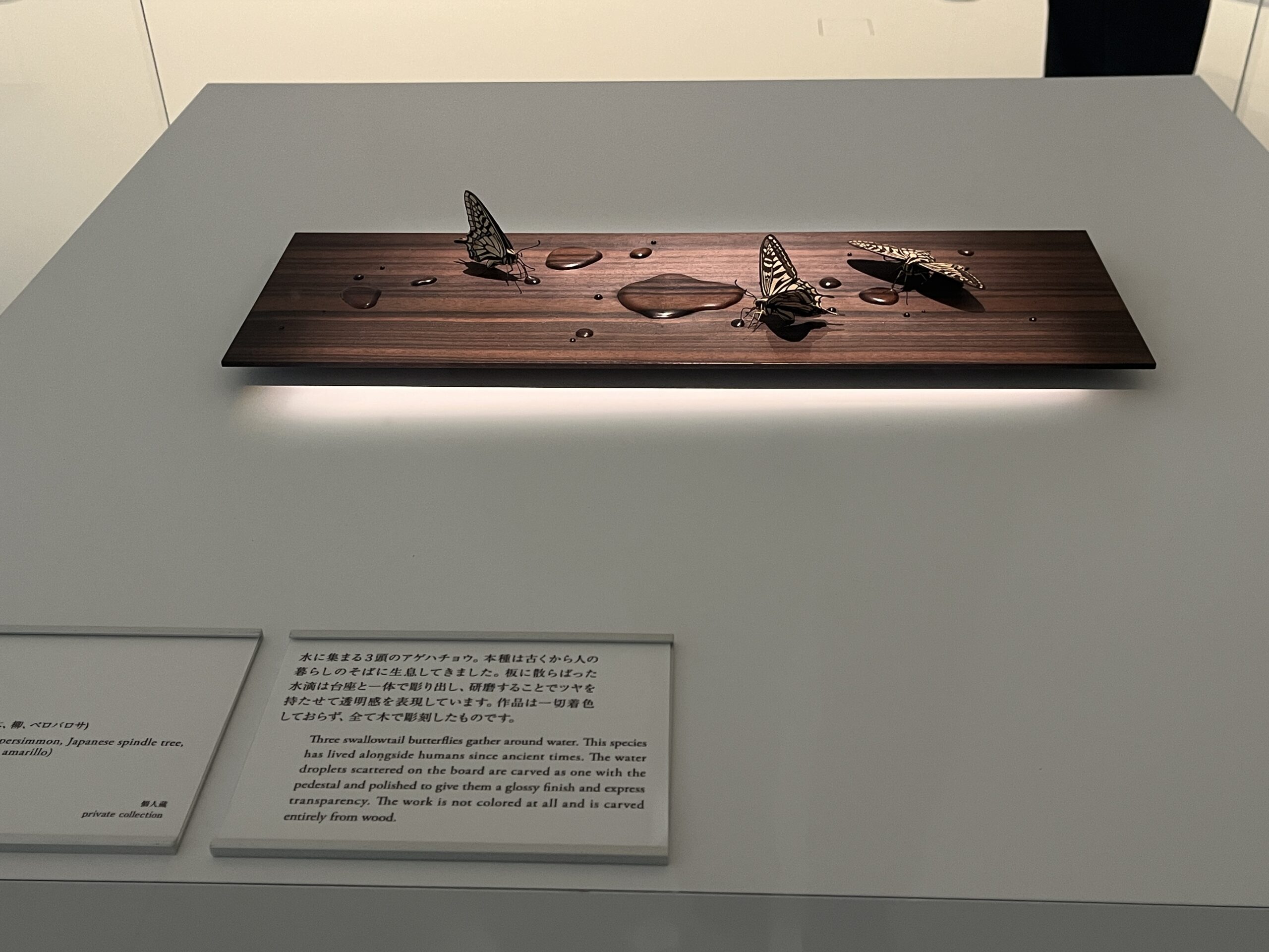下瀬美術館の可動展示室や、自然光を取り入れた展示空間は、昆虫を主題にした作品群と相性が良く、光や影、空間の“間”が作品の見え方を変えます。展示は作家・テーマごとにセクション分けされつつ、館内の動線が“発見”を促すように配置されており、作品と建築が対話しているような体験が得られました。今回の展示では、視覚的な驚きだけでなく解説パネルや作家ステイトメントも丁寧に配置され、鑑賞後に昆虫というテーマの多様な解釈を咀嚼できる構成でした。