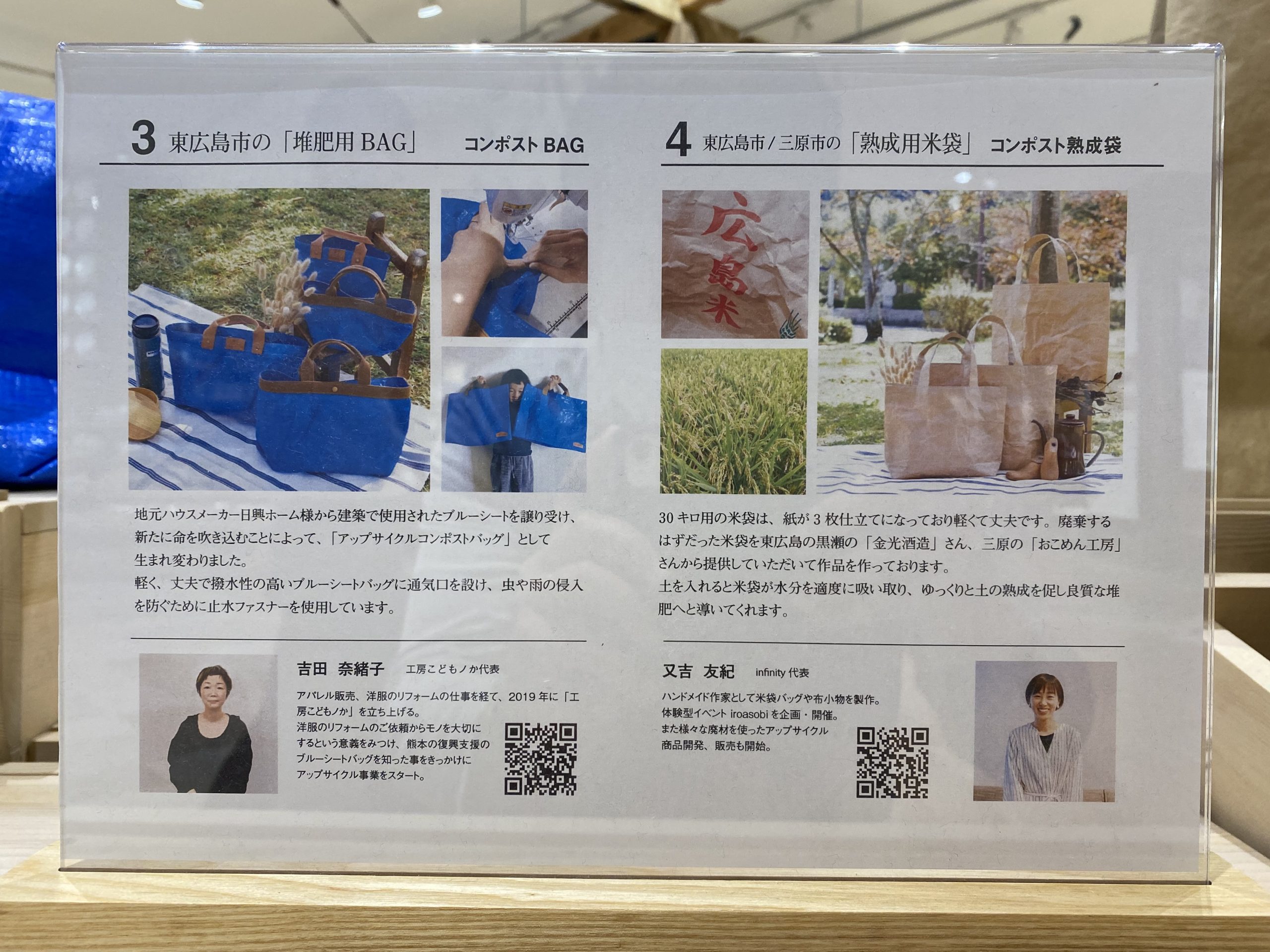 弊社日興ホームの建築資材ブルーシートをアップサイクルして作成された、コンポストBAGも売られていました。