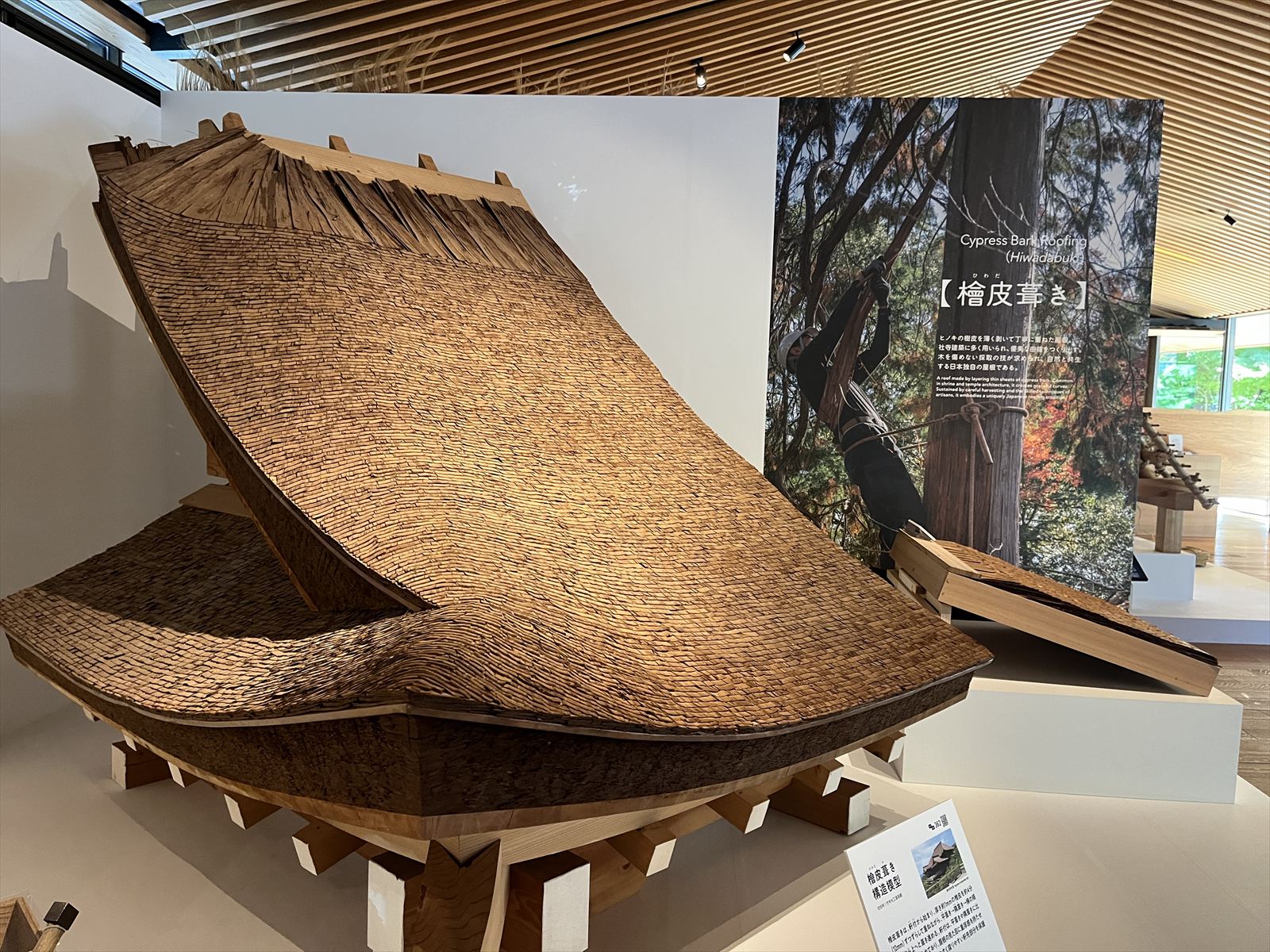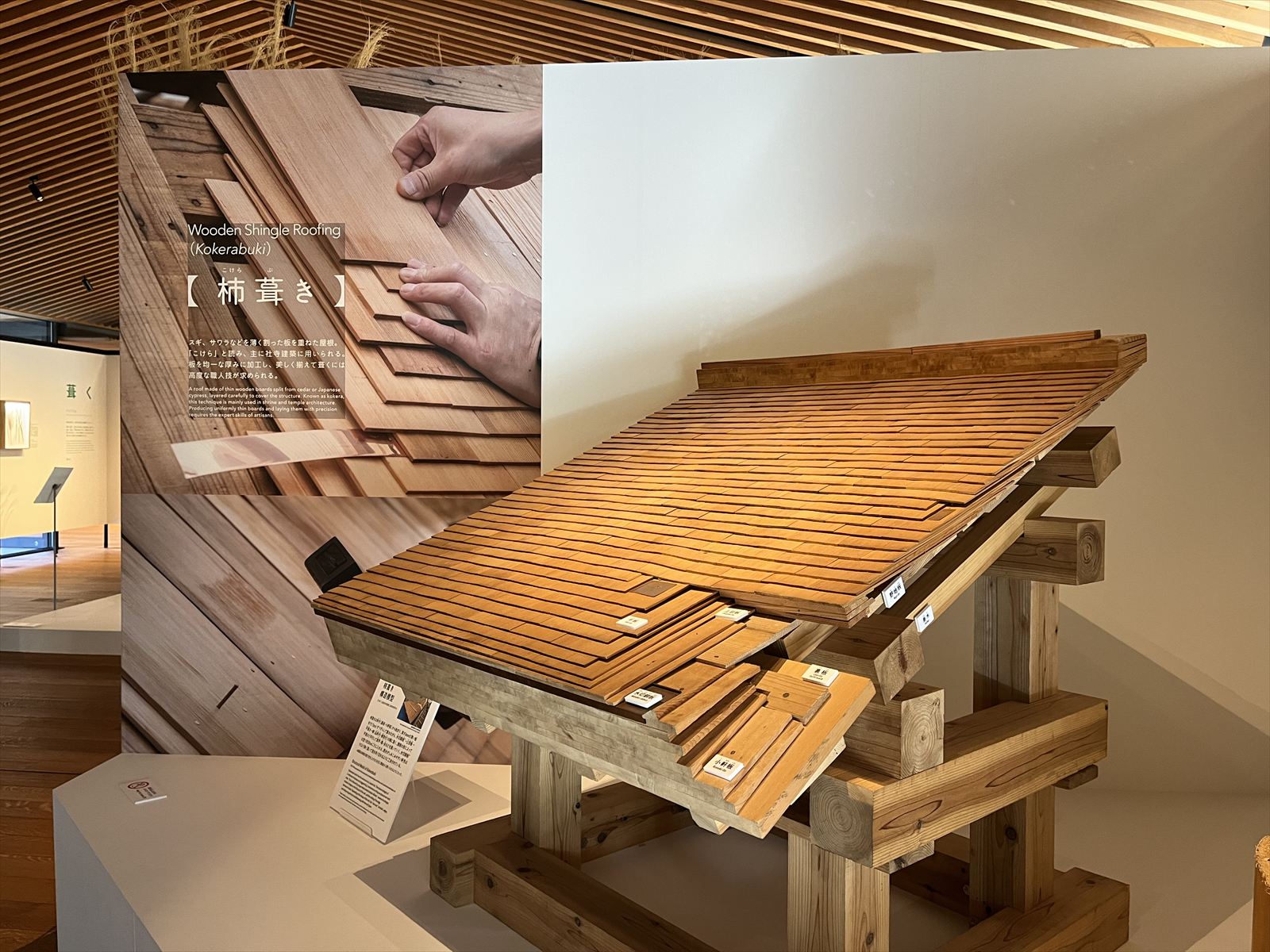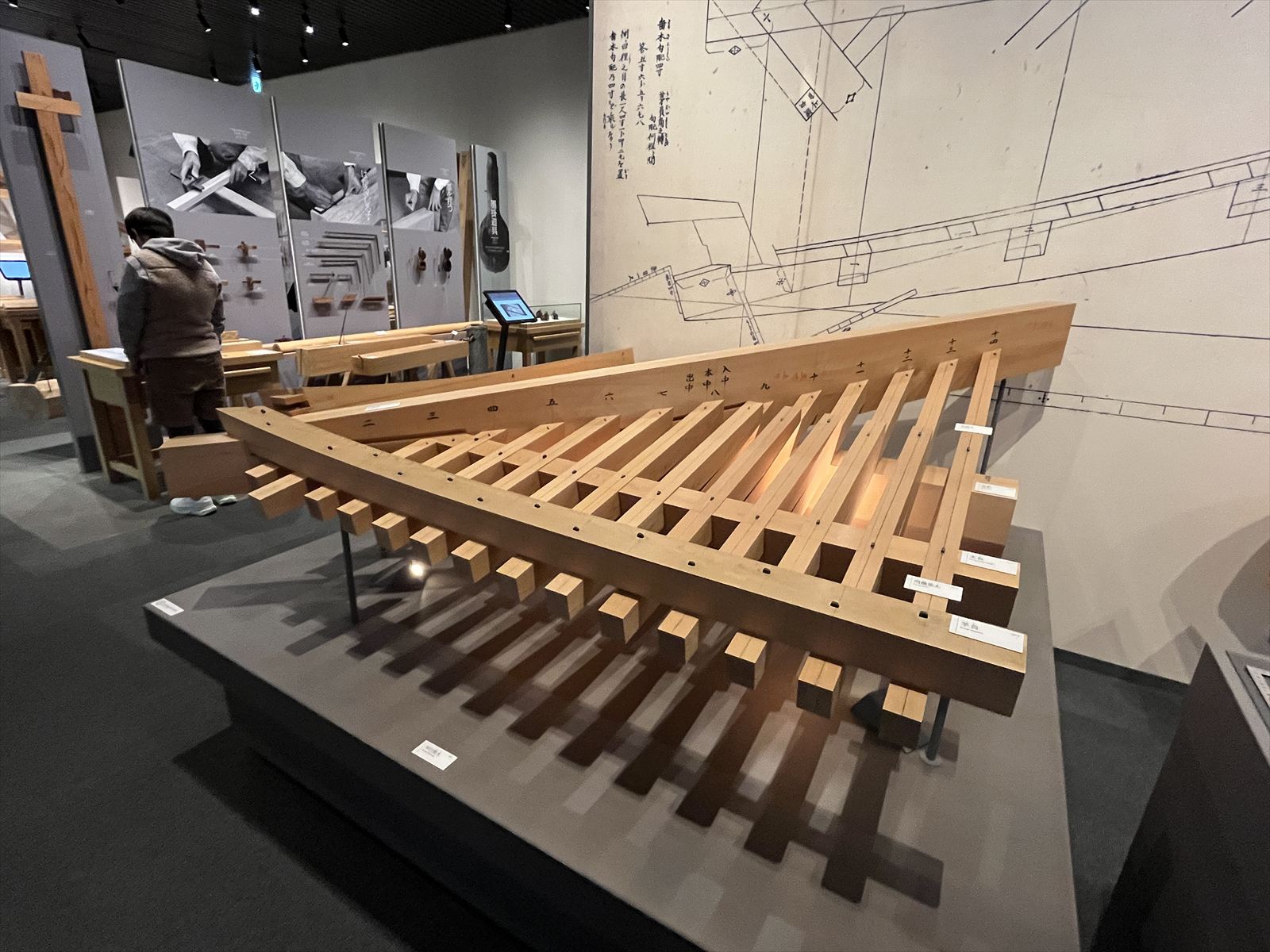 (写真:仕口・小屋組み継手模型の展示風景)