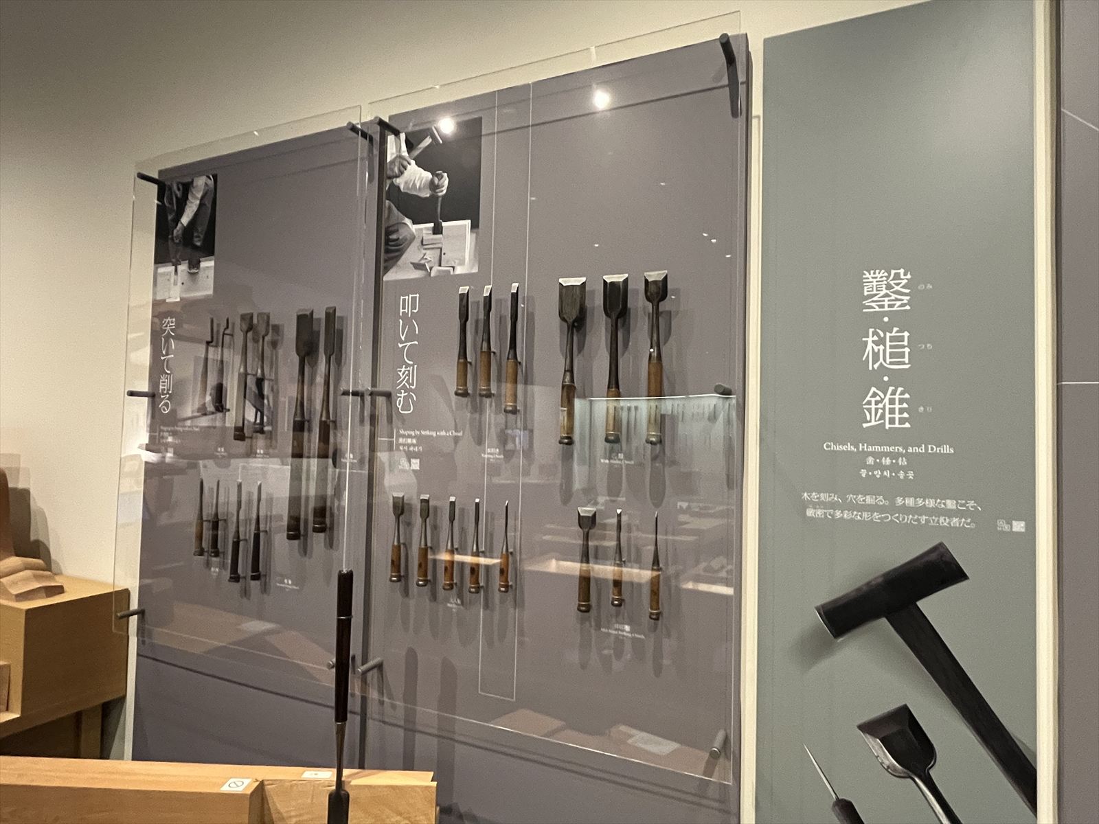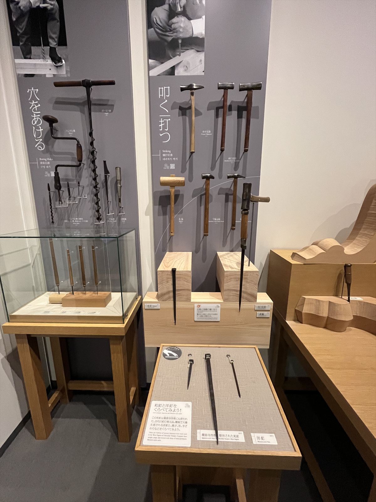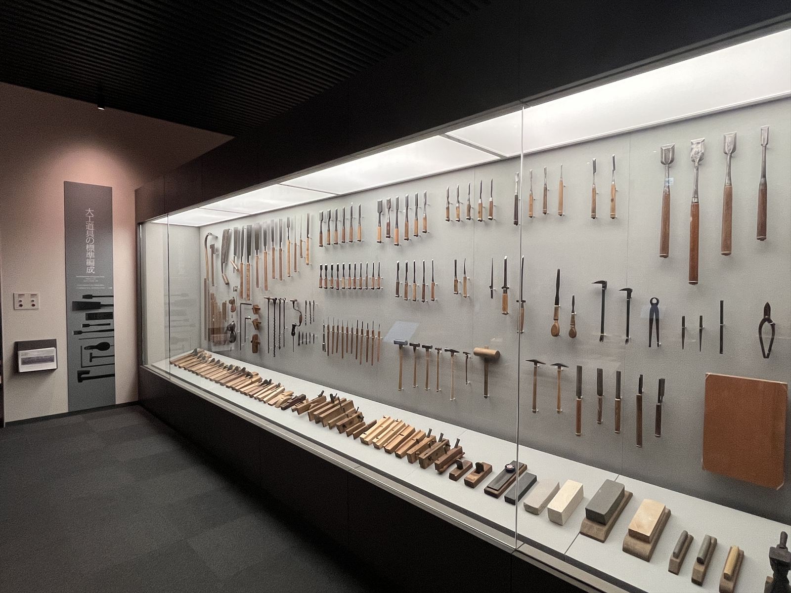(写真:鉋や鋸などの伝統道具が並ぶ展示室)