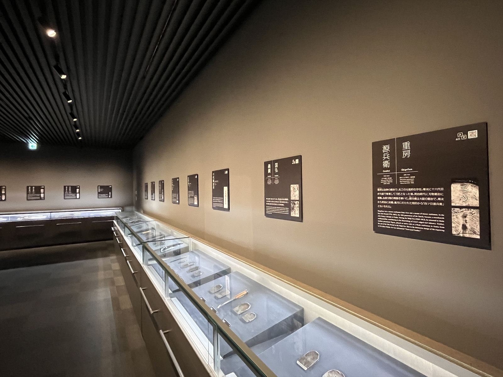 (写真:職人の作業場再現コーナーと銘刀の展示)