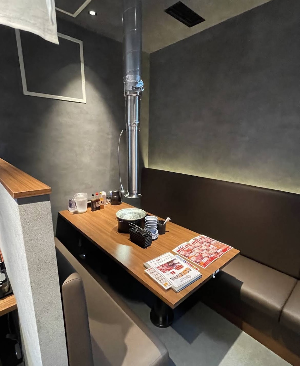 店内は、焼肉店というよりも落ち着いた和モダンの高級感ある内装。木の質感と間接照明が心地よく、「ランチで来るには贅沢かな?」と思いつつも、すでに店内はほぼ満席。平日の昼間とは思えない賑わいに、このお店の人気ぶりが伝わってきます。