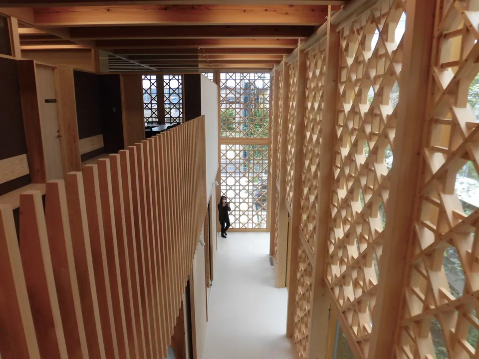 「組子耐力壁」は、細かな“組子”文様(伝統的な木格子)を単なる意匠に留めず、組むことで強度を発揮する組子の構造原理を拡大して耐力壁(地震時の水平力に抵抗する壁)として機能させた製品です。