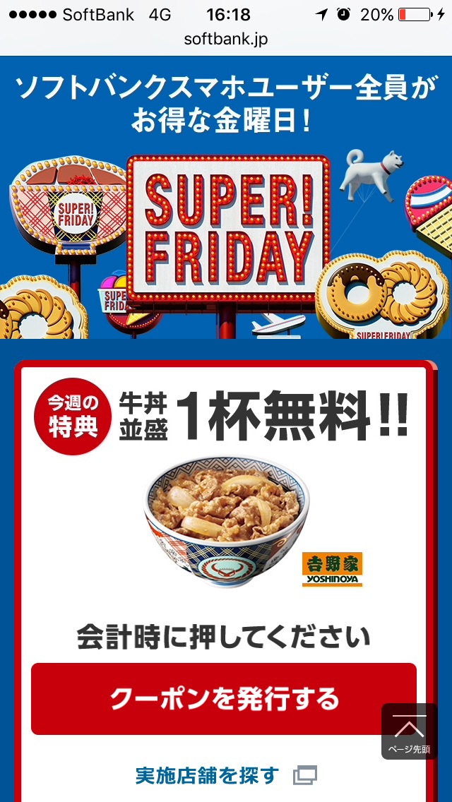 今日はなんと… ソフトバンクのスマホユーザーの方は、今日、牛丼がタダで食べられます! これはソフトバンクが携帯電話サービス開始から10周年を記念して行っている企画『SUPER FRIDAY』で、毎週金曜日にプレゼントが貰えるというものです? 当然、無料で牛丼を頂きました? しかし、とんでもない企画をしたもんです????