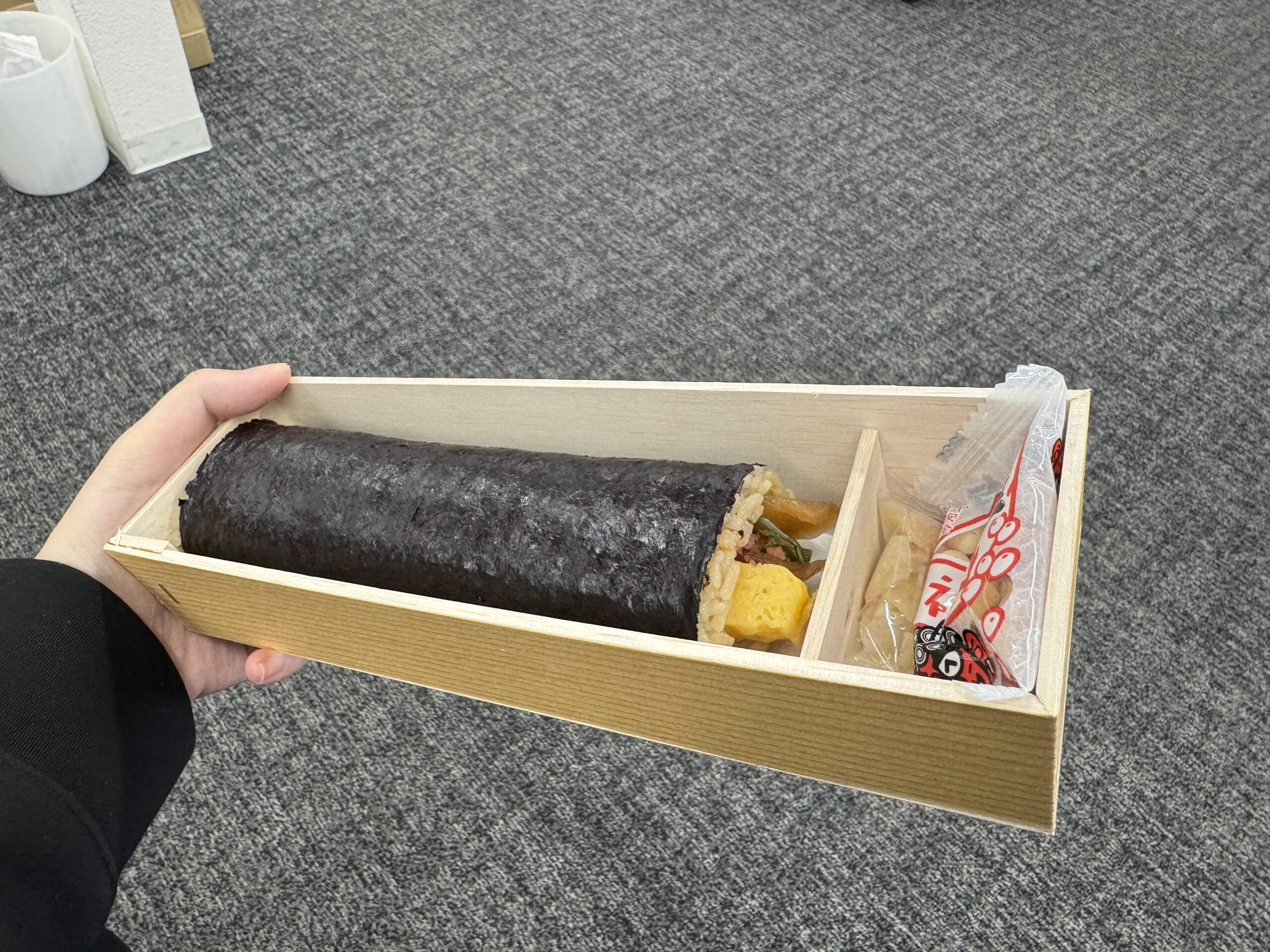 前日に突然「恵方巻のお渡しがあります」というメッセージが届いて、思いがけないサプライズに少しわくわく。