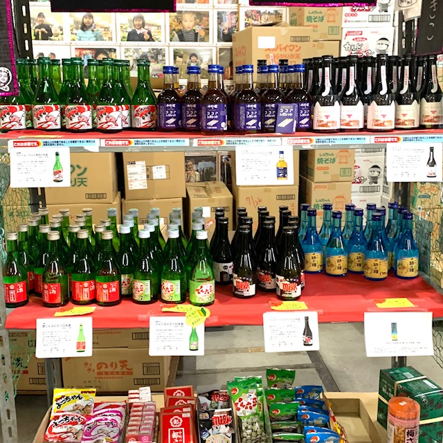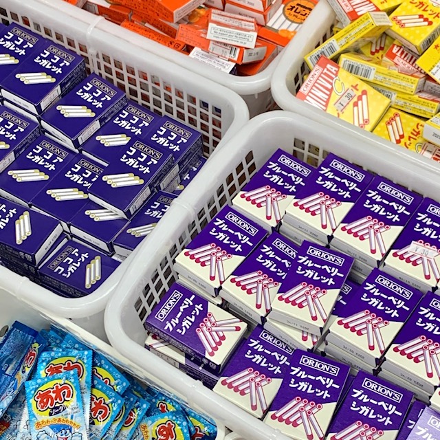 ピーピーラムネやよっちゃんイカなど懐かしいものから、お菓子に合う日本酒という珍しいものまで、豊富な種類のお菓子が置かれていました。