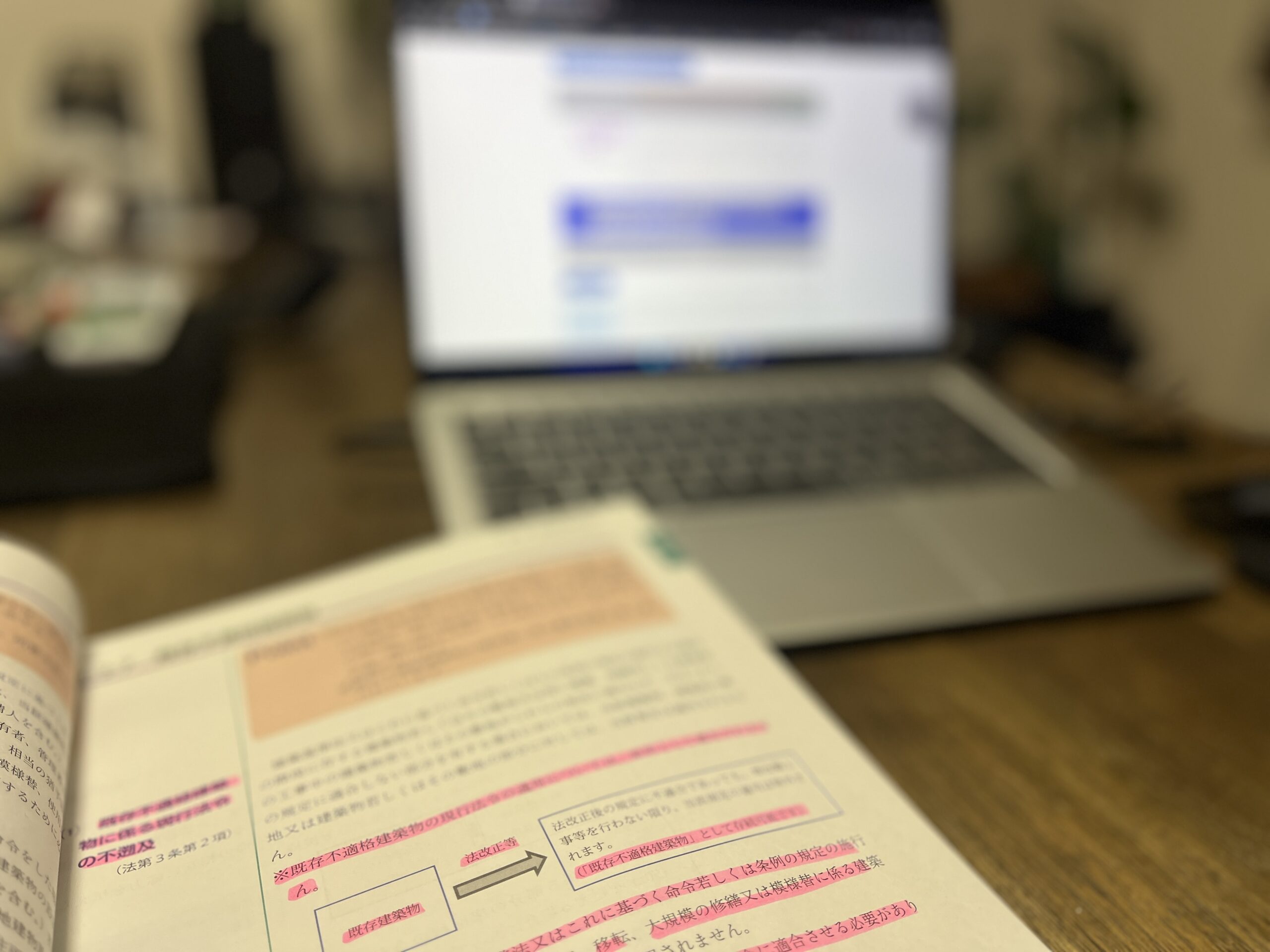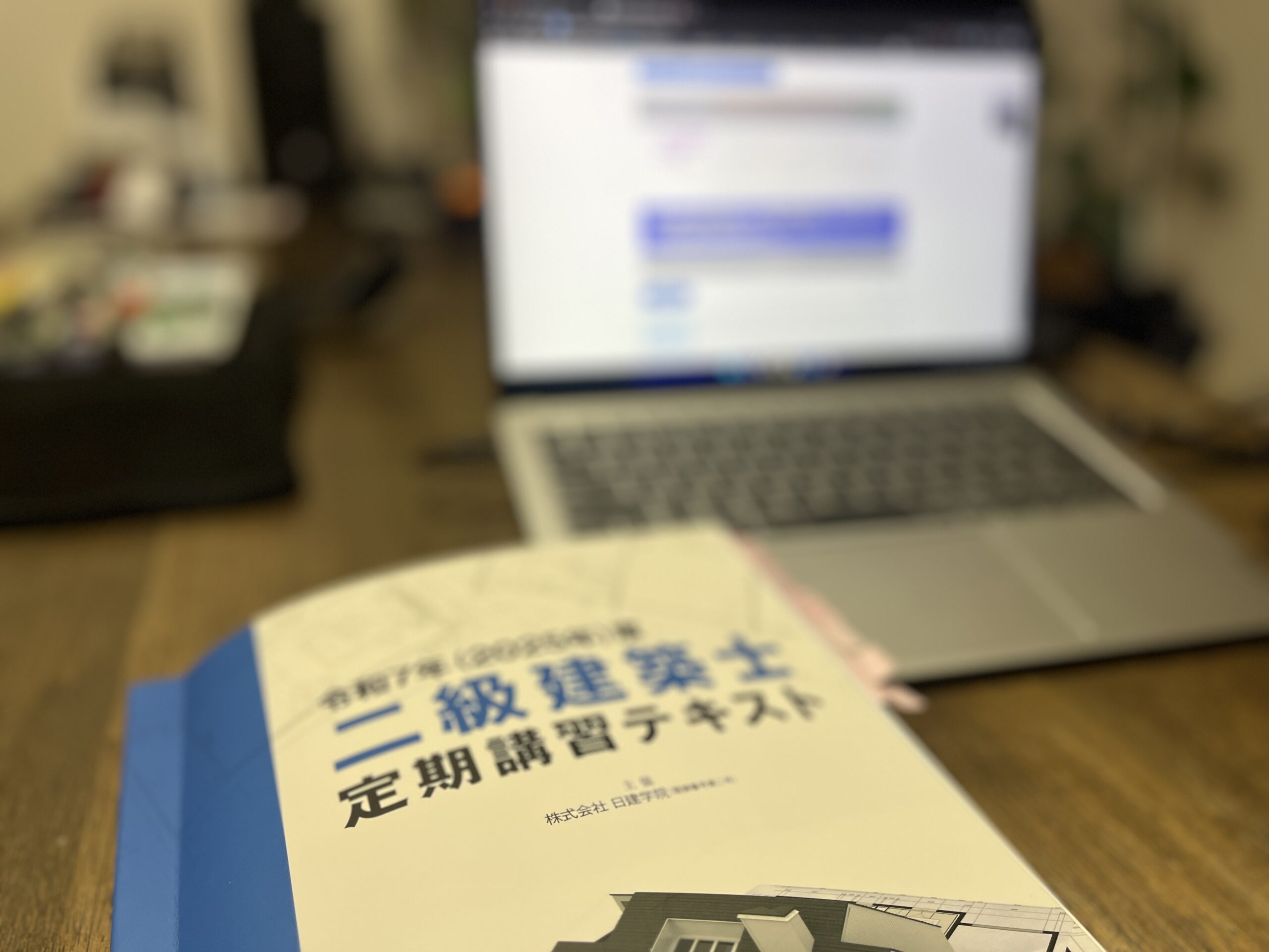 数年前から、建築士講習はインターネットで受講できるようになり、会場へ移動する必要もなく、自分のペースで学べるようになりました。テキストを広げ、PCに向かって講義を受けるこのスタイルは、忙しい実務者にとって本当にありがたい仕組みです。