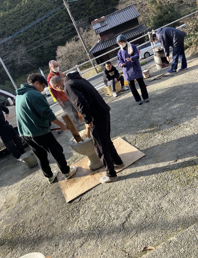 福岡に帰ってきてからは、毎年恒例の杵&臼での餅つきを行ったり、