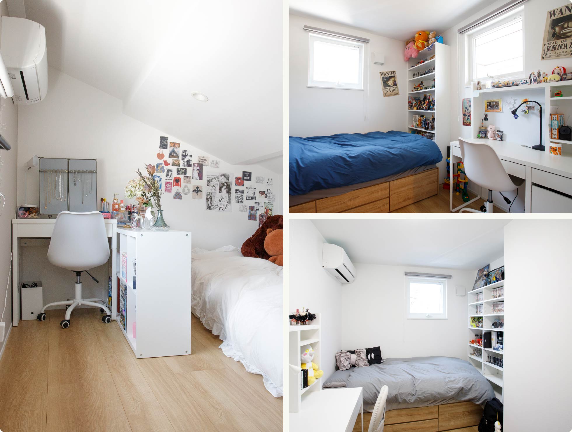 念願の自分の部屋ができて、3人のお子様がそれぞれ自分らしく楽しんでいます