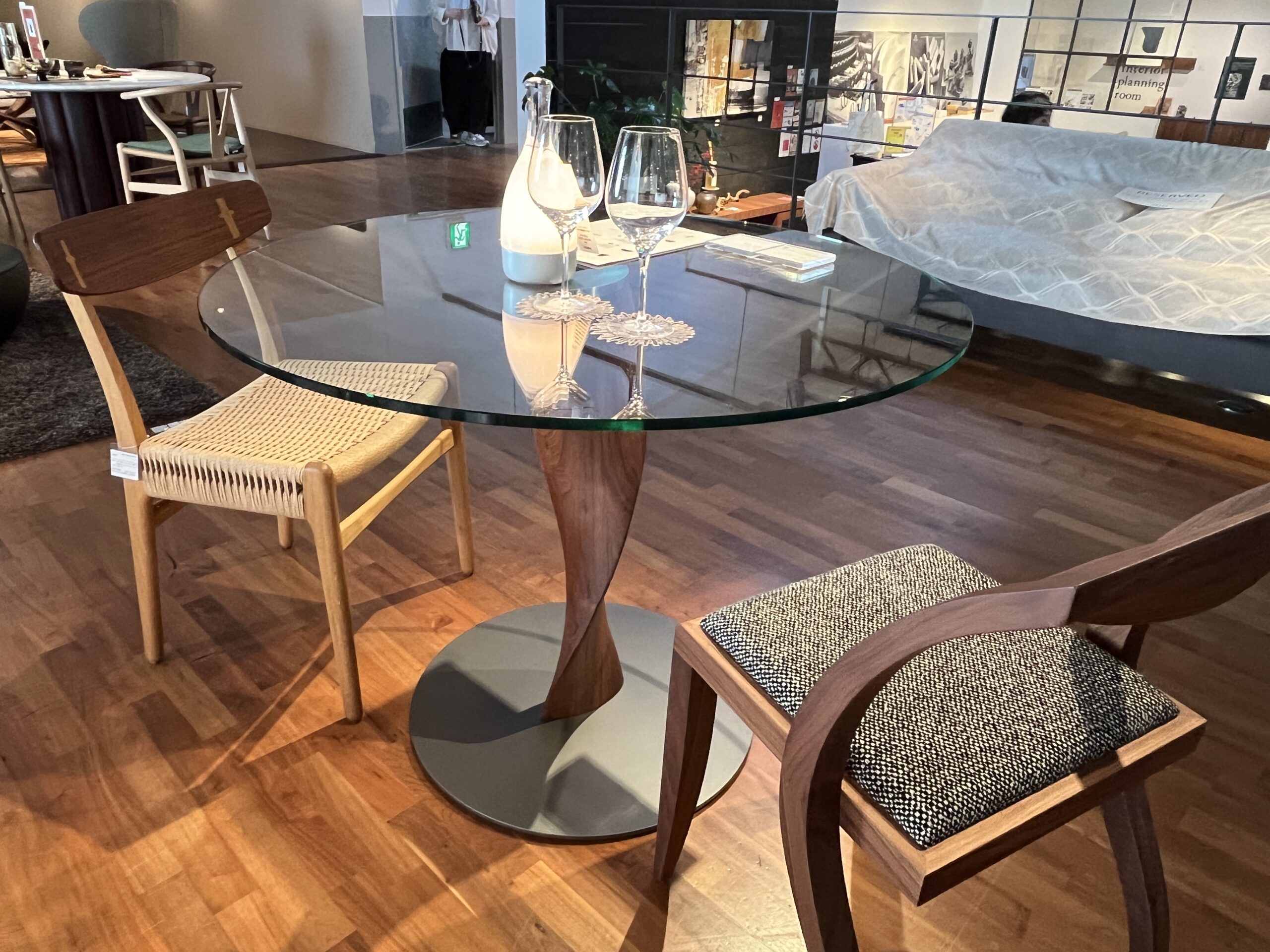 ダイニングの概念を超えた、空間を楽しむためのテーブルだと感じました。絶妙な距離感が楽しめるので、オフィスにも合いそうです。