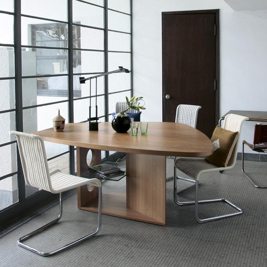 ウォールナットの質感が美しく、中央の一本脚が彫刻のようなデザイン。
