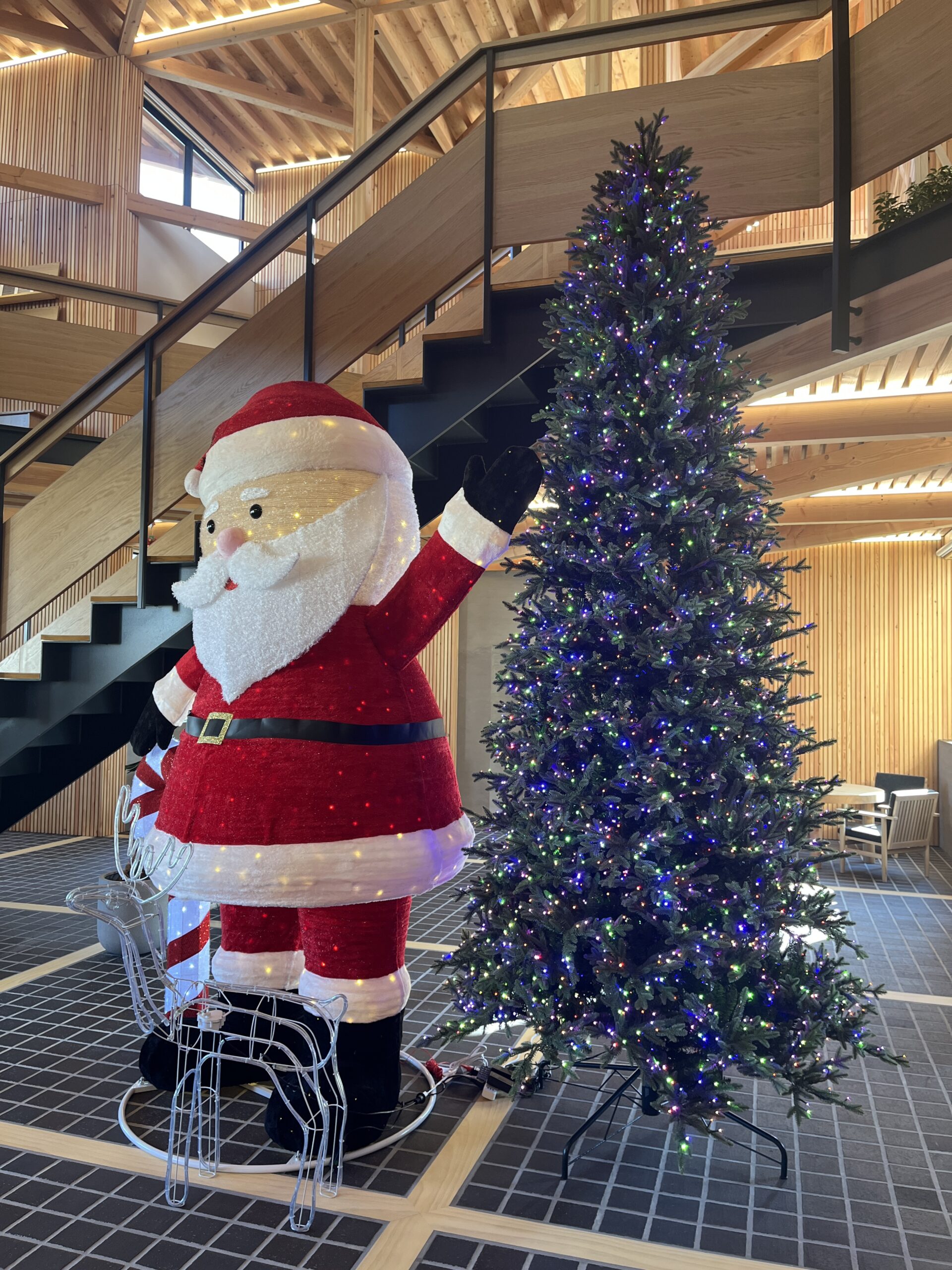 ― 1階ホールに大きなサンタクロースとクリスマスツリーがお目見え ―