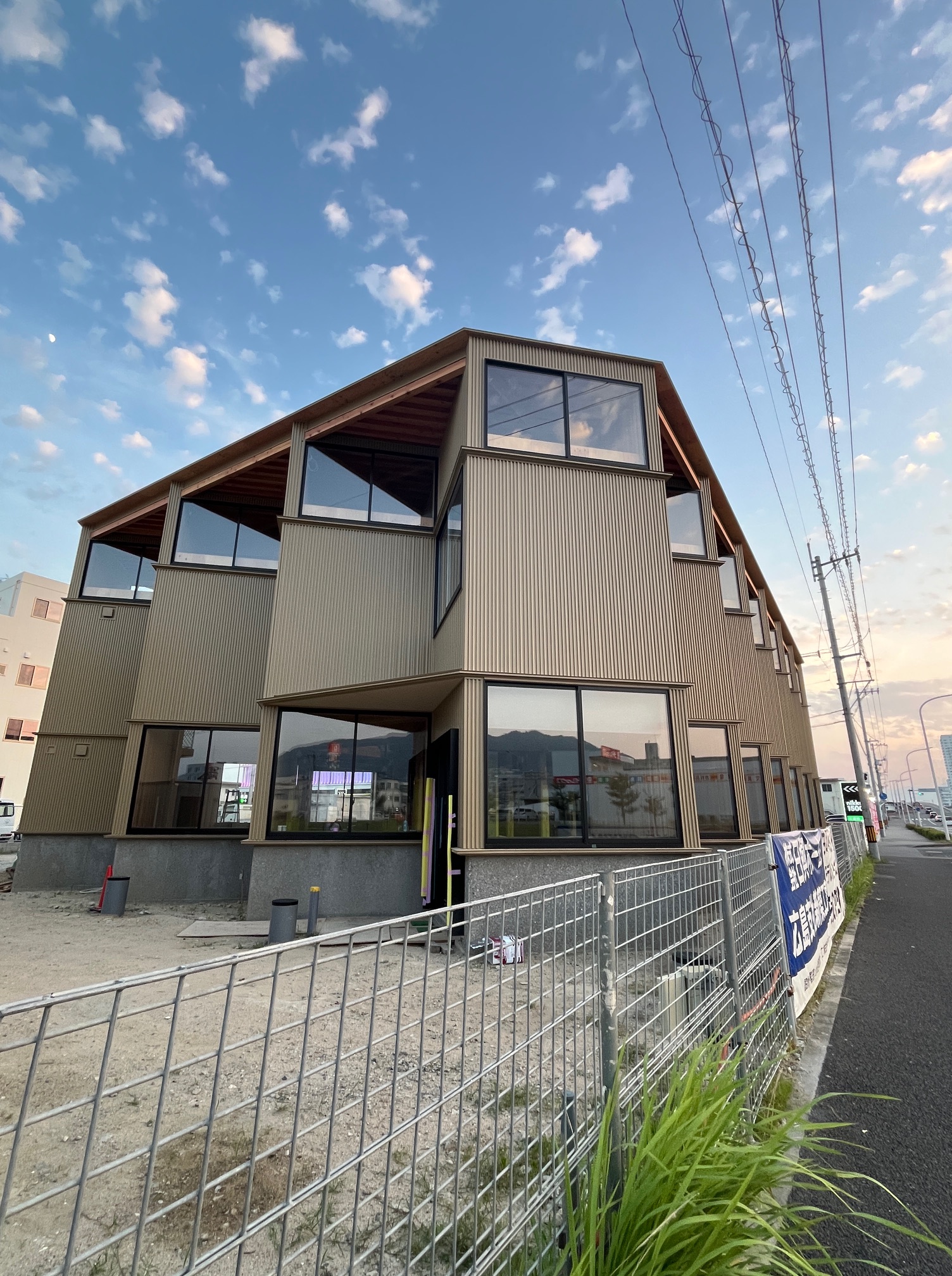 最後の写真は、先日、仕事終わりに撮影した外観の一枚です。夕日と青空を背景に撮ったもので、まったく色補正はしていませんが、とても気に入っている写真です。