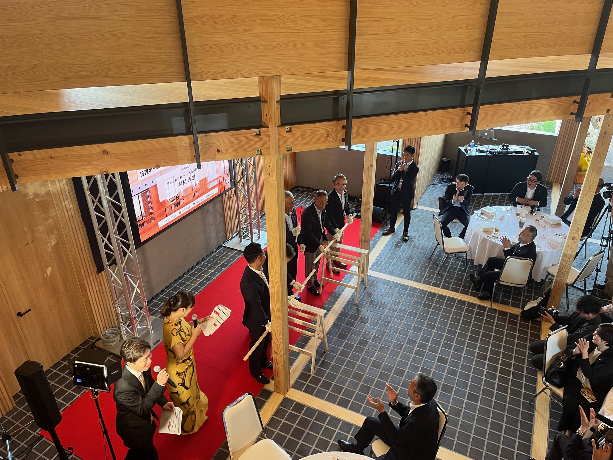 通常であればテープカットを行うところですが、今回は壁に取り付けられた格子をカットする「NOKO入れ」を実施しました。
