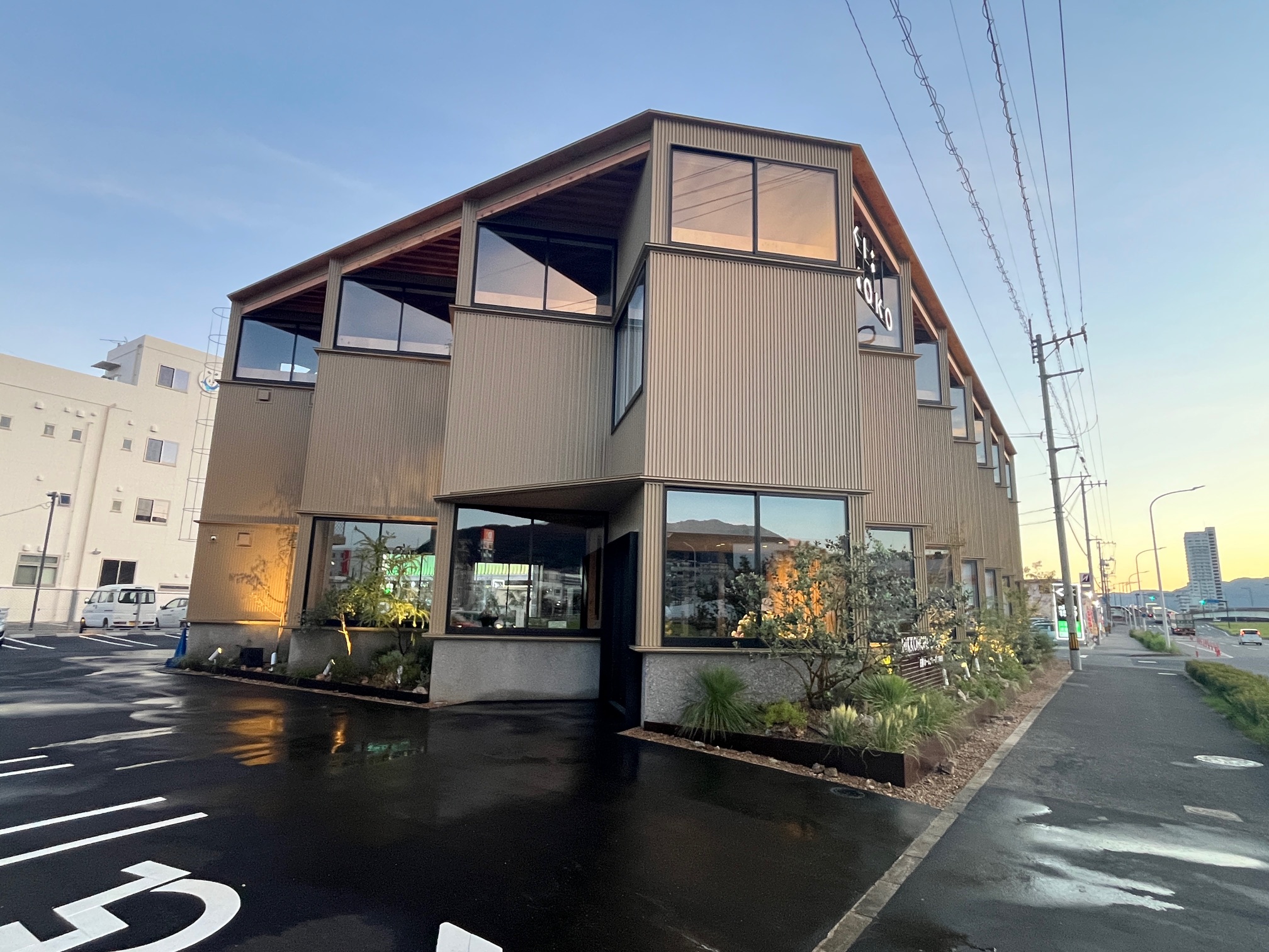 夕方、少し涼しい風が吹きはじめた頃、植栽に水をやりながらひと息。夕暮れに包まれた建物の外観は、いつも以上に美しく映えて見えました(笑)。