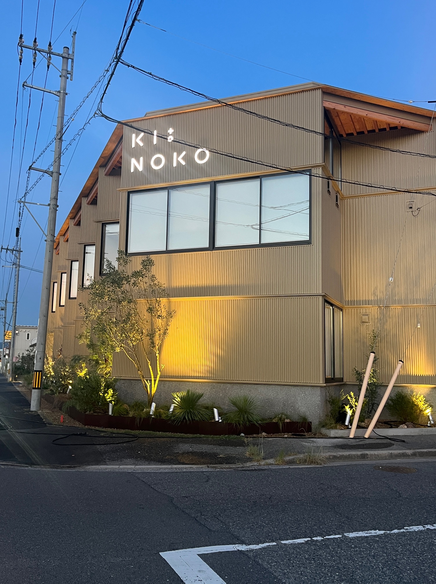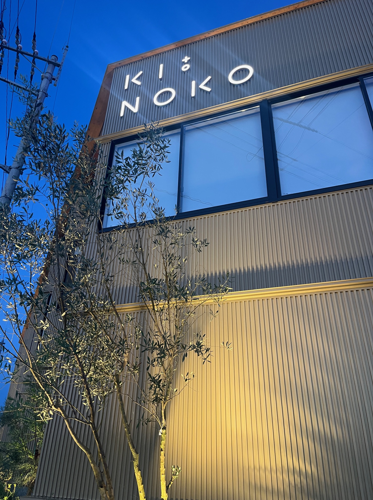 北西の外壁に掲げられた 「KI to NOKO」 のサインも、やわらかな光を受けてとても素敵に輝いています。