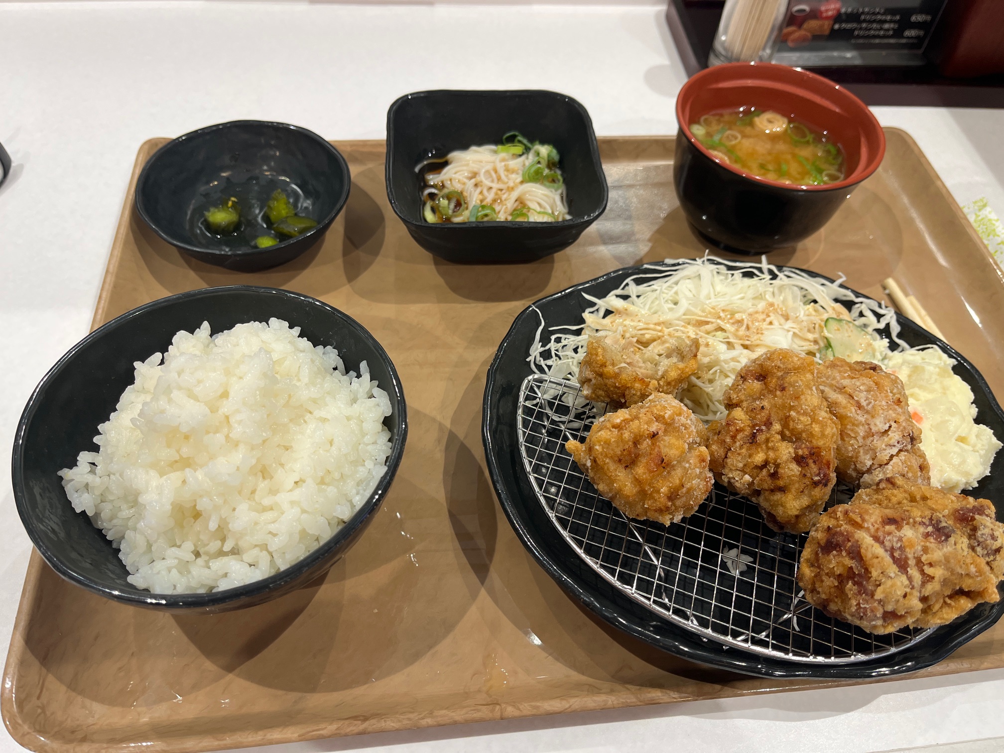 お昼ご飯は、から揚げ定食。