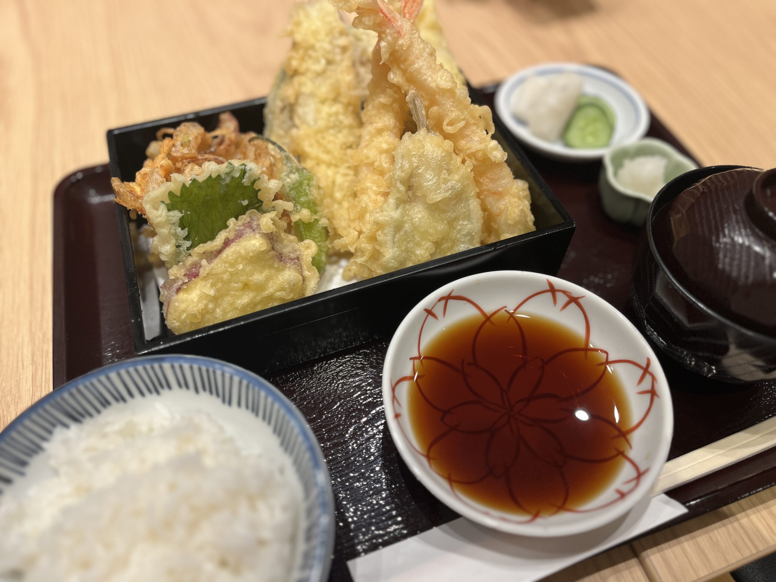 晴れた日の午前中、ゆっくりと訪れてみると、広島の“緑と空”の魅力を改めて感じられます。お昼ご飯は、6階ミナモアダイニングでボリューム満点の天ぷら定食を頂きました(笑)。