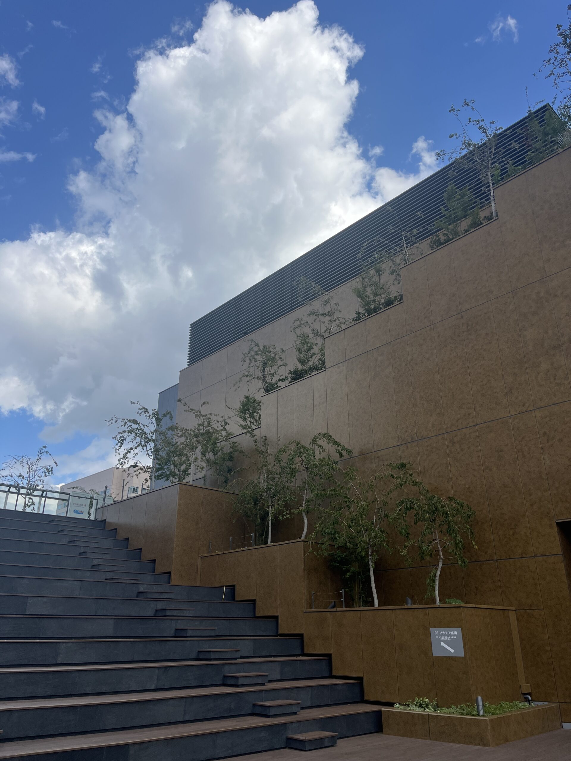 屋上へと続く大階段は、デザイン性の高い開放的な空間。段差部分には腰掛けられるスペースが設けられており、イベント時には観覧席にもなるそうです。