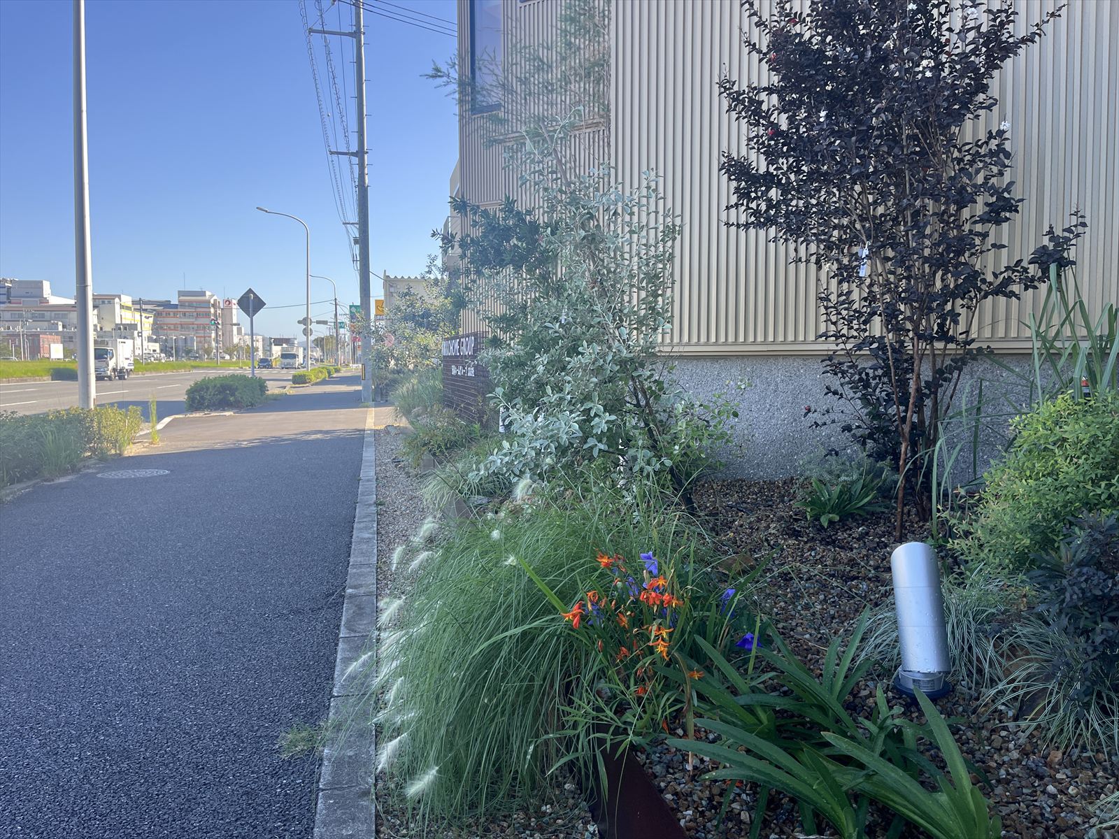 建物の周囲に広がるガーデンは、日常に溶け込む緑のデザインが魅力。季節ごとに植栽が表情を変え、訪れるたびに新しい発見があります。