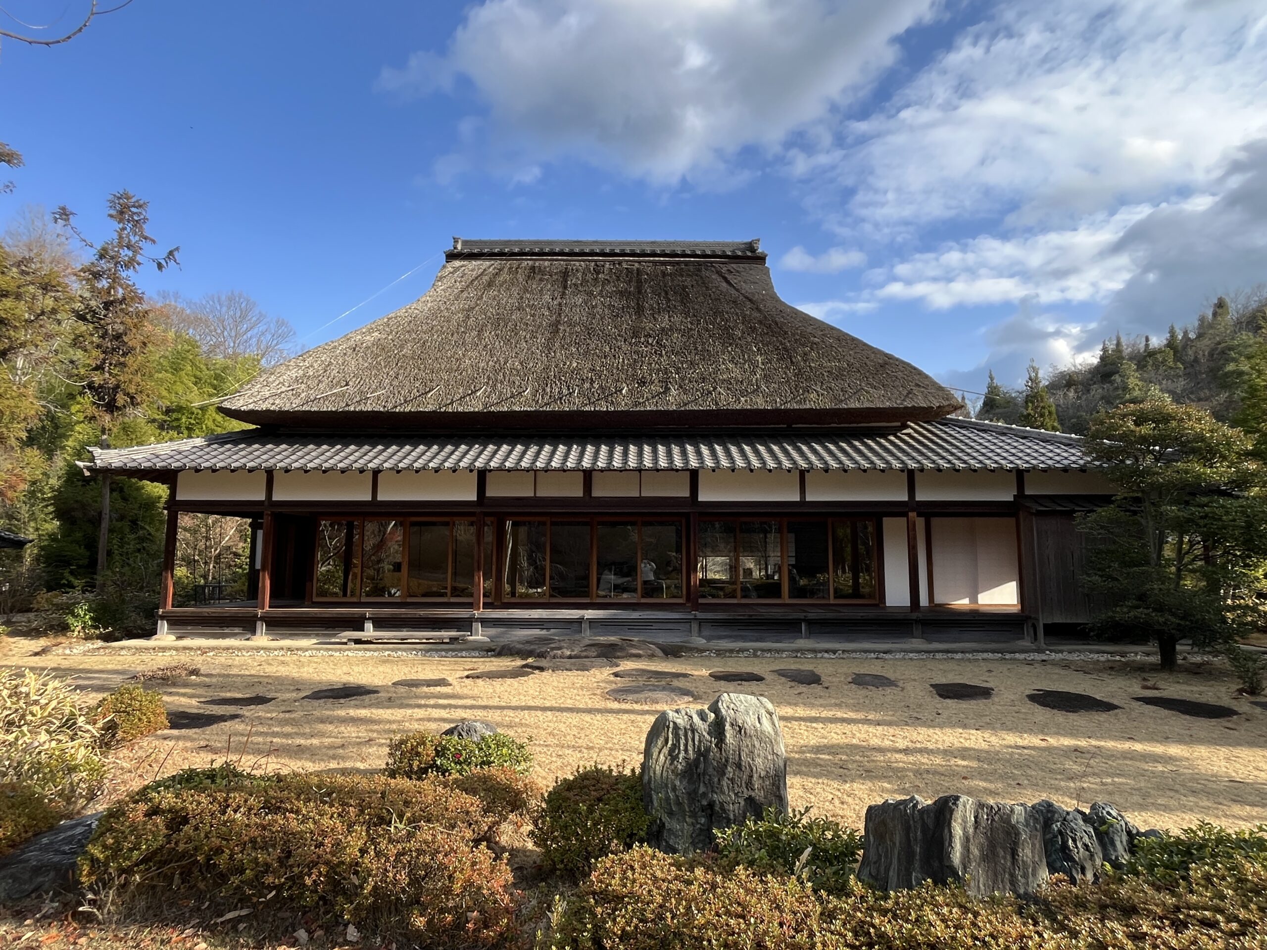 「含空院」は、滋賀県臨済宗永源寺派大本山永源寺より移築再建した建物で、築350年以上を経た葦葺きの重厚な印象の建物です。