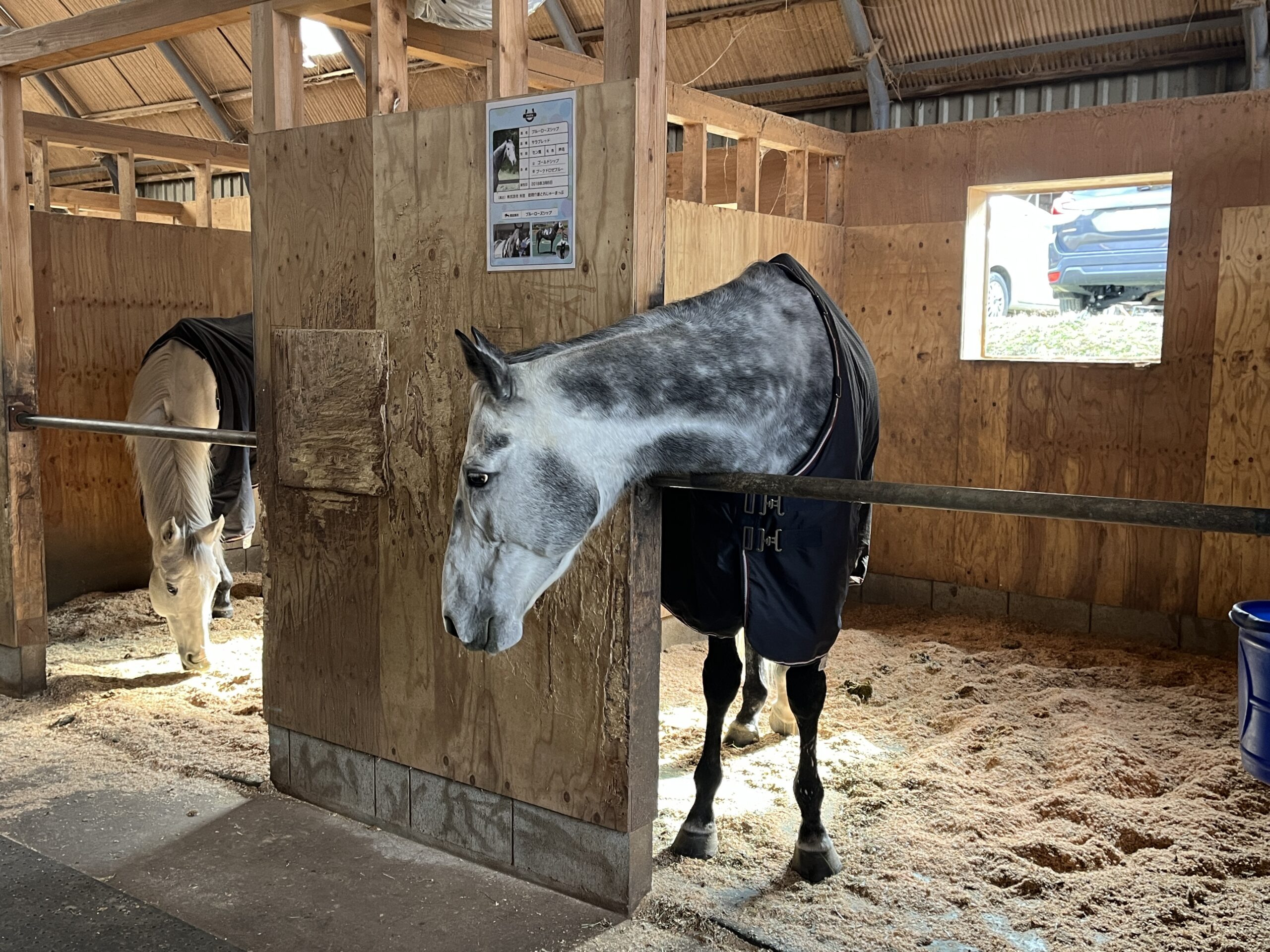 今回は“癒し”目的ではなく、厩舎設計の参考という明確なテーマを持っての訪問。とはいえ、現地に到着した瞬間、その目的は半分ほど吹き飛びました。――サラブレットがとにかく可愛い。最高!