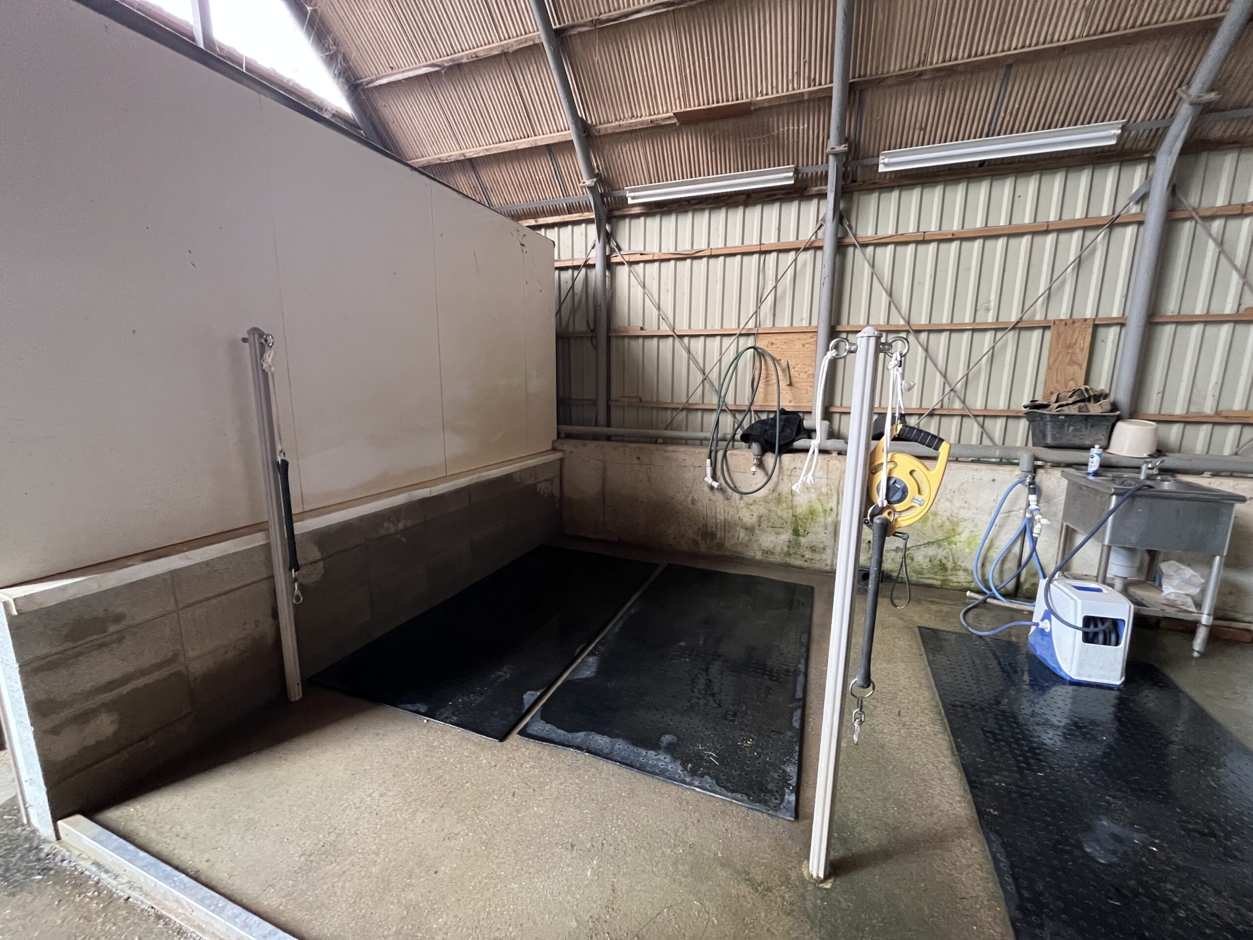 馬の洗馬場は、冬場はお湯が基本。水はねや排水の処理、滑りにくさへの配慮など、実務的な工夫が随所に見られました。