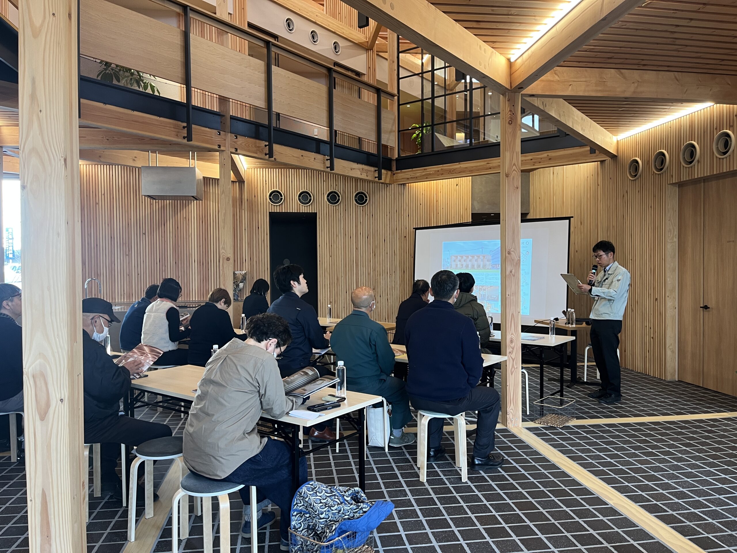 当日は、設計事務所様、プレカット業者様、大手ゼネコン会社の設計士様など、建築関係の第一線でご活躍されている皆さま総勢21名にご参加いただきました。