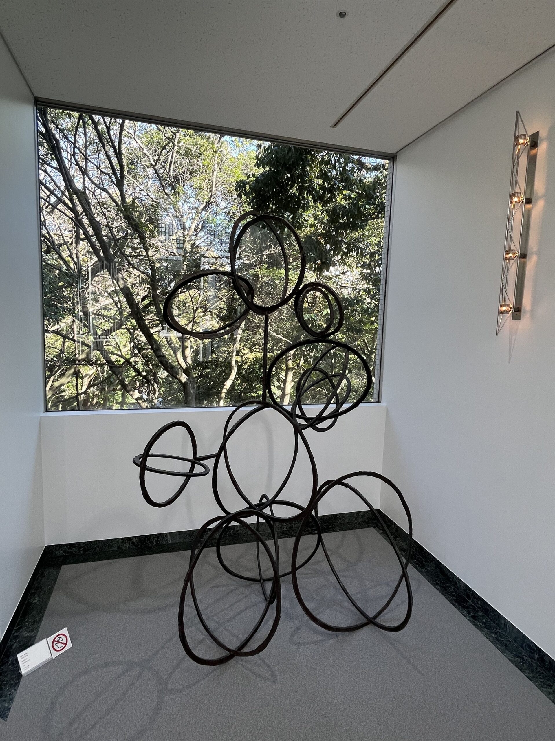 木々の間から現れる彫刻やオブジェは、自然と調和しながらも確かな存在感を放っています。