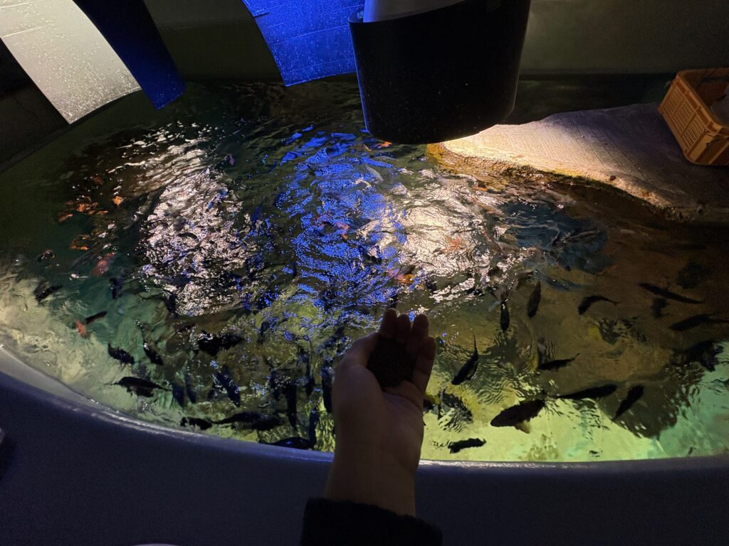 見学だけでなく、実際に魚たちへエサやりをすることもできました✨