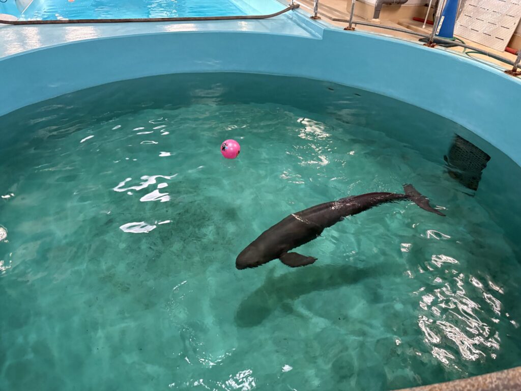繁殖の調整のために別の水槽で泳いでいる子スナメリもおりました!