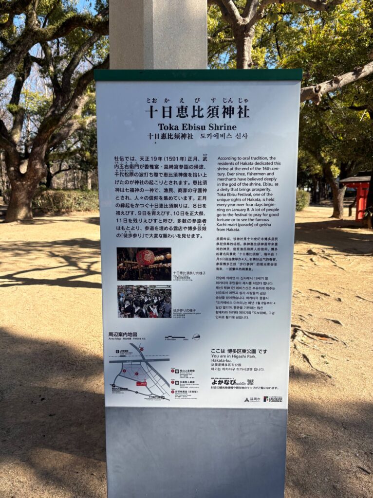 出発から素晴らしいスタートを切った今回の福岡旅ですが、博多駅についてからは地下鉄に揺られながら大濠公園に行ってみたりしつつ、十日恵比寿神社へ。
