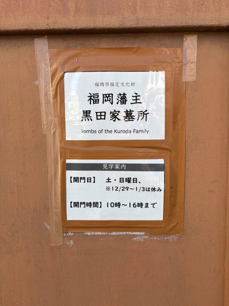 (ちなみに、なぜ博多に黒田官兵衛のお墓があるかというと、官兵衛が秀吉から福岡の地を任され福岡藩祖となったことから、官兵衛の息子で後に黒田家の家督を継ぐ黒田長政以降、黒田家が福岡を治めることになったからです)