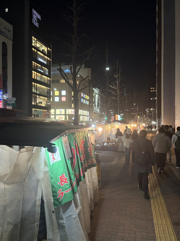 小休憩後は少しお腹がすいてきたので、福岡名物屋台へ繰り出しました。