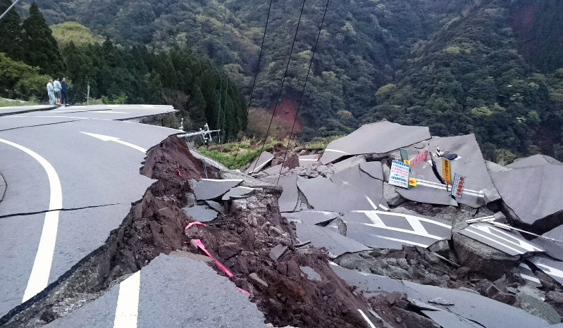 写真:熊本地震の道路崩壊