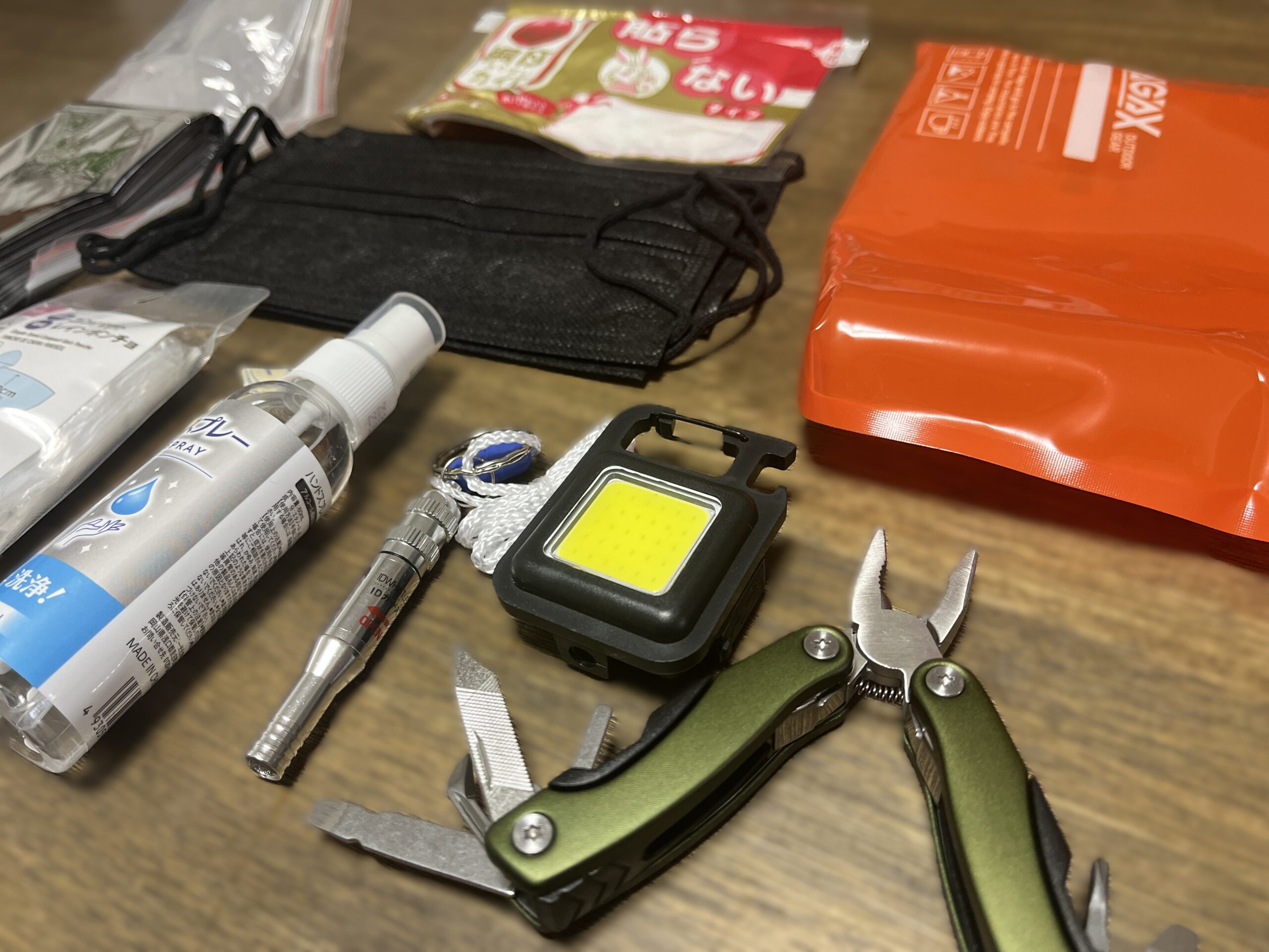 ※十徳ナイフと、充電式ライトのみ300円商品ですが、その他はすべて100円で揃います。