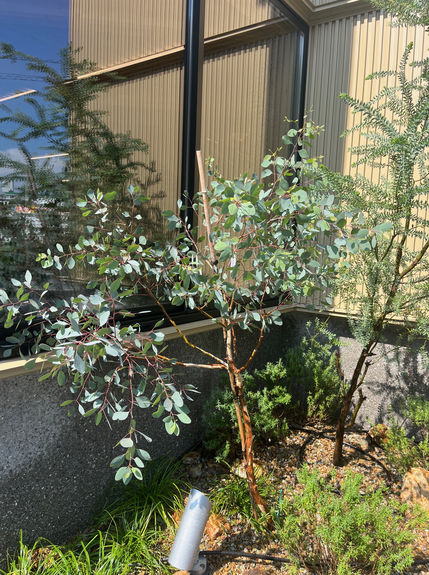 青みがかったシルバーリーフが魅力。乾いた空気や日差しにも強く、庭に植えると一気にオーストラリアの雰囲気を演出してくれます。
