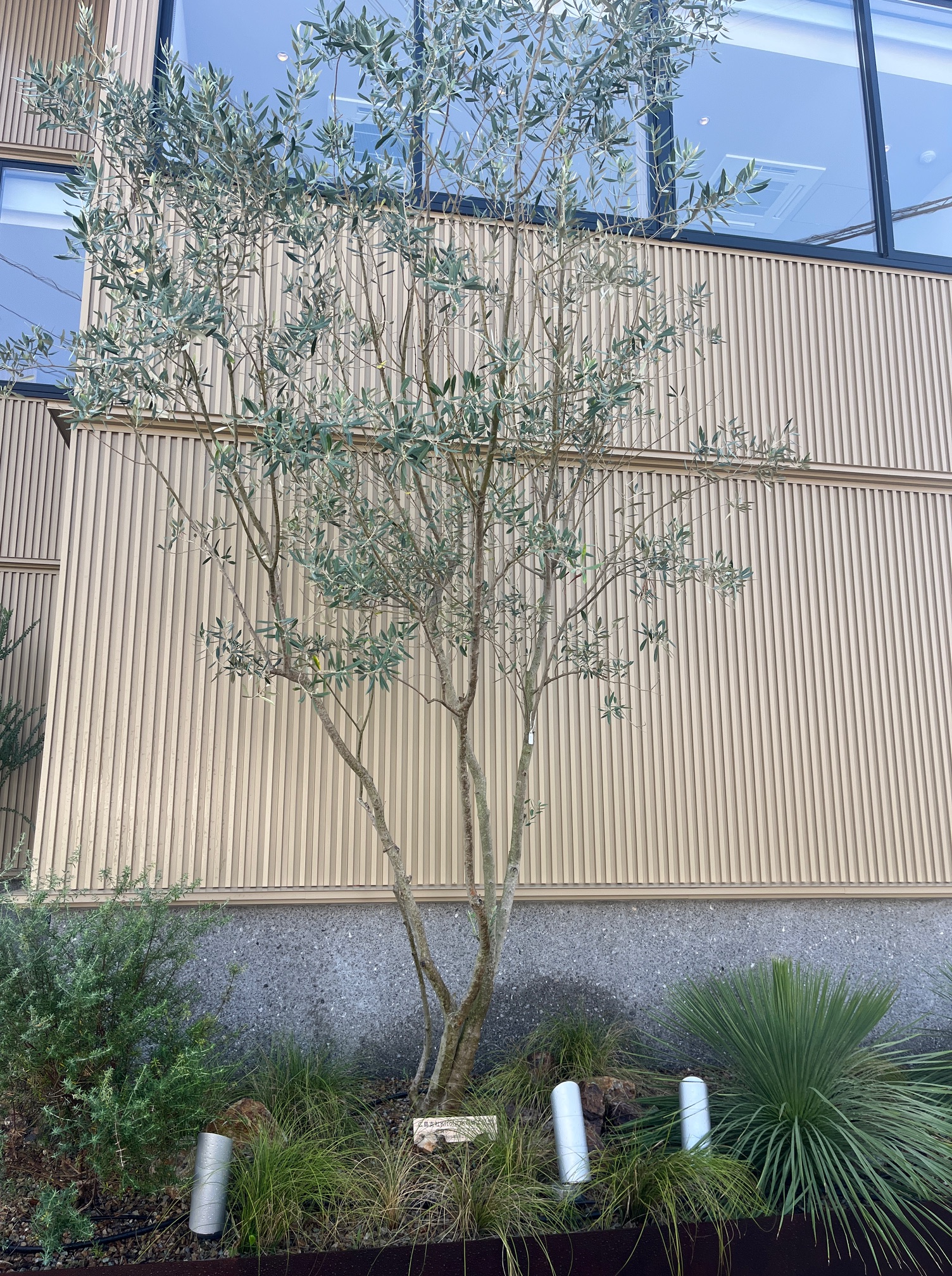 地中海の風を感じさせる定番の庭木。グレーがかった葉色と実のなる姿は、やはり特別な存在感があります。