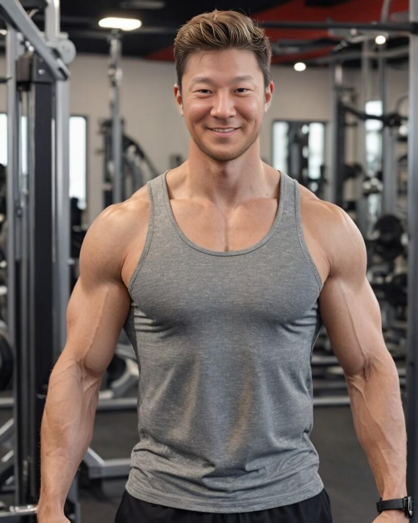 ※私の写真2枚をもとに、この人をマッチョにしてくださいとAIに頼んで作成したマッチョ小倉です💪
